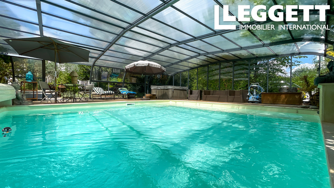 À l'extérieur : jardins, piscine, dépendances, stationnement pour plus de 10 voitures.