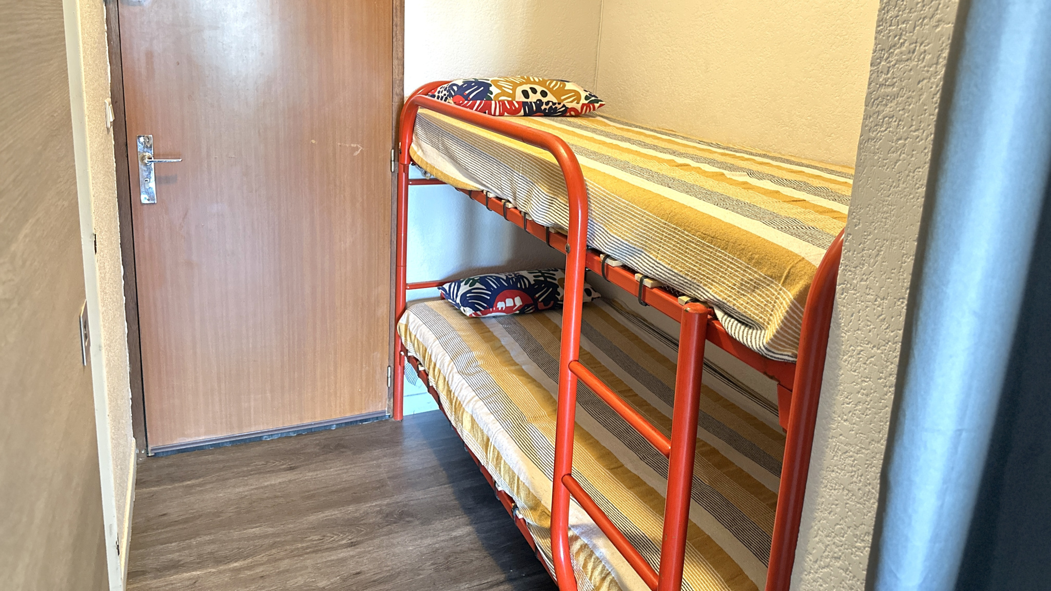 Il se compose d'un hall d'entrée avec coin nuit indépendant doté de lits superposés, d'une salle de bains avec WC, d'une pièce de vie lumineuse avec cuisine aménagée et équipée, prolongée par une loggia fermée ouvrant sur une agréable terrasse et un jardinet privatif.