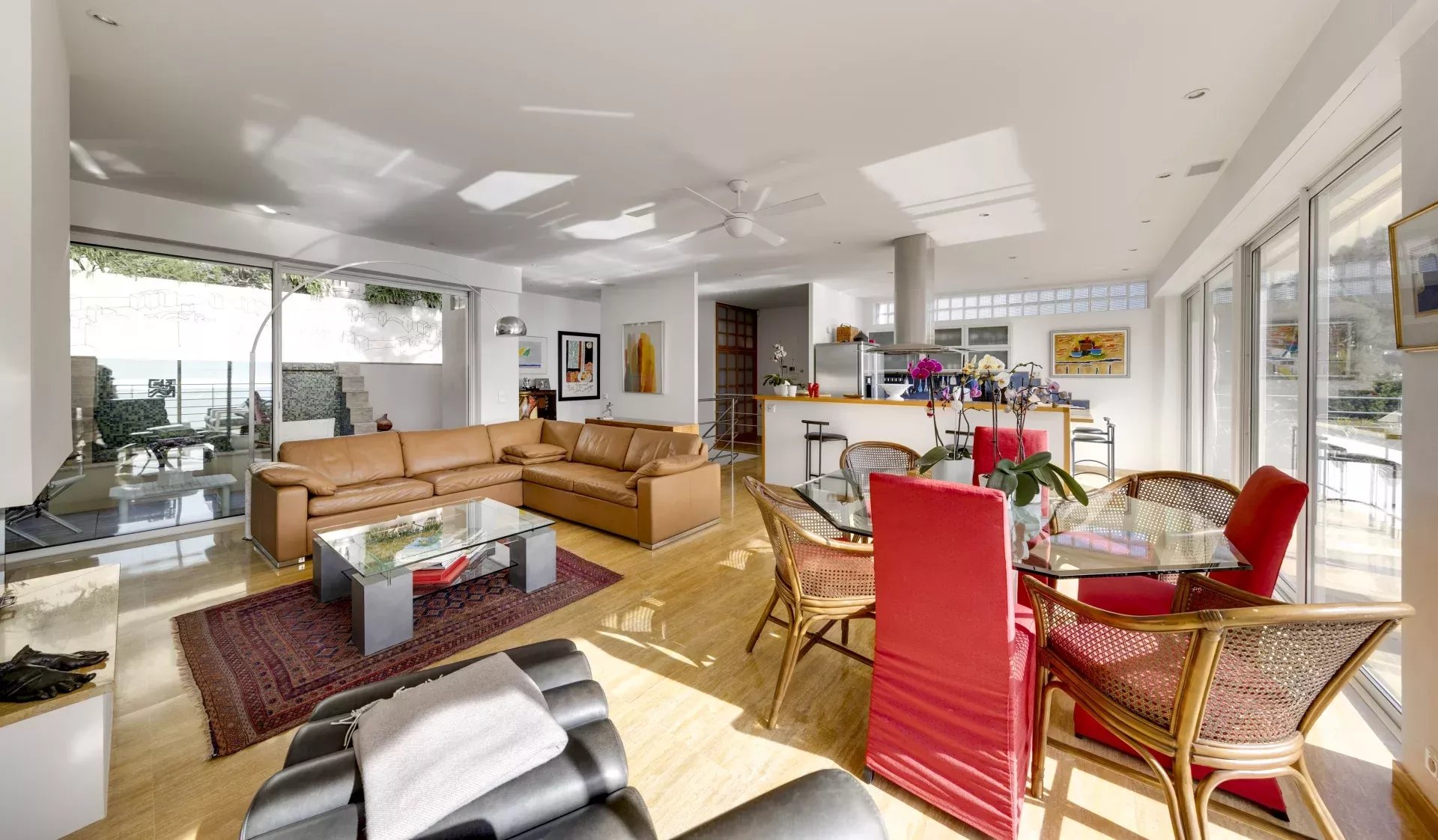 Eze bord de Mer, à mi-hauteur sur la colline, maison contemporaine offrant une splendide vue mer. D'une superficie habitable de 166 m² répartis sur 3 niveaux, la villa propose un lumineux séjour / cuisine de 60.75 m² prolongé par une agréable terrasse de 33 m². Sur l'arrière une grande baie vitrée permet une belle vue mer tout en profitant de la piscine. Au niveau inférieur, en plus des 3 chambres, nous avons une pièce servant de bureau / buanderie de 14.87 m² et une terrasse de 18 m².