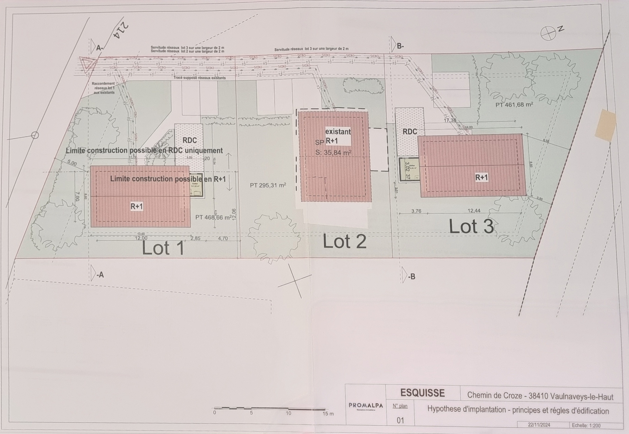 Sur les hauteurs de la commune de Vaulnaveys le Haut, à BELMONT, nous vous proposons 1 lot de TERRAIN CONSTRUCTIBLE d'une surface de 691 m2. Ce terrain bénéficie d'un permis de construire obtenu pour la réalisation d'une maison individuelle d'environ 140 m2. Ce terrain se trouve en zone UD3d du Plan Local d'Urbanisme Intercommunal en vigueur - il permet une emprise au sol de 20 % - Prix de vente de 227.000 euros avec bornage, viabilité et permis de construire purgé - LIBRE DE CONSTRUCTEUR - Nous pouvons vous aider dans vos démarches si besoin, n'hésitez pas à demander