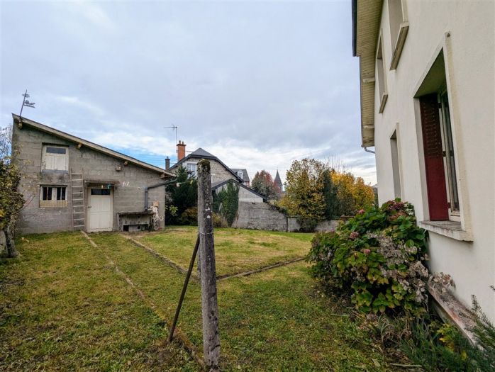 Au coeur d'un quartier résidentiel et calme du centre d'Ussel, jolie maison à rénover sur son terrain plat de 705 m². Elevée sur un sous-sol total (garage, chaufferie, cave et débarras), son rdc surélevé propose une superficie d'env 70 m² répartis en une cuisine, un cellier, une salle à manger, une entrée, 2 chambres, sde et wc ; son étage de même superficie comprend un palier, trois belles chambres dont une avec pièce attenante, et une avec accès à un petit balcon, un cabinet de toilette et une salle de bains. Dépendance en parpaing. Idélalement située pour un accès à pieds aux commodités du centre-ville et aux écoles, cette maison familiale nécessite des travaux de rénovation (menuiseries, isolation, remplacement de la chaudière, électricité...) afin de pouvoir s'y installer confortablement, vous permettant ainsi de laisser libre-cours à vos projets d'aménagement.