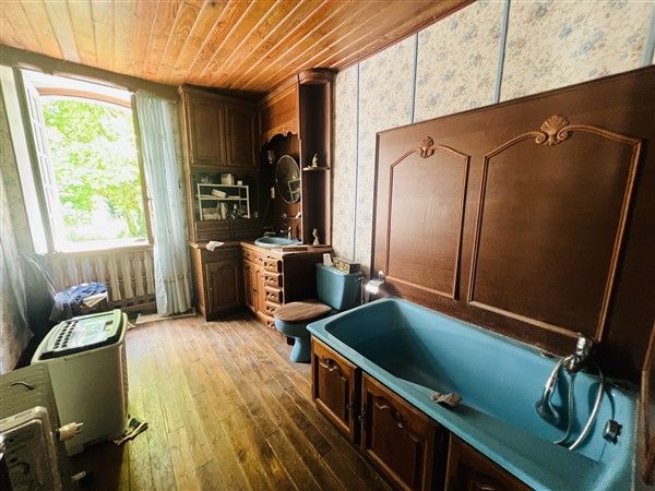 Chauffage au gaz citerne et bois, assainissement non conforme, simple vitrage bois.