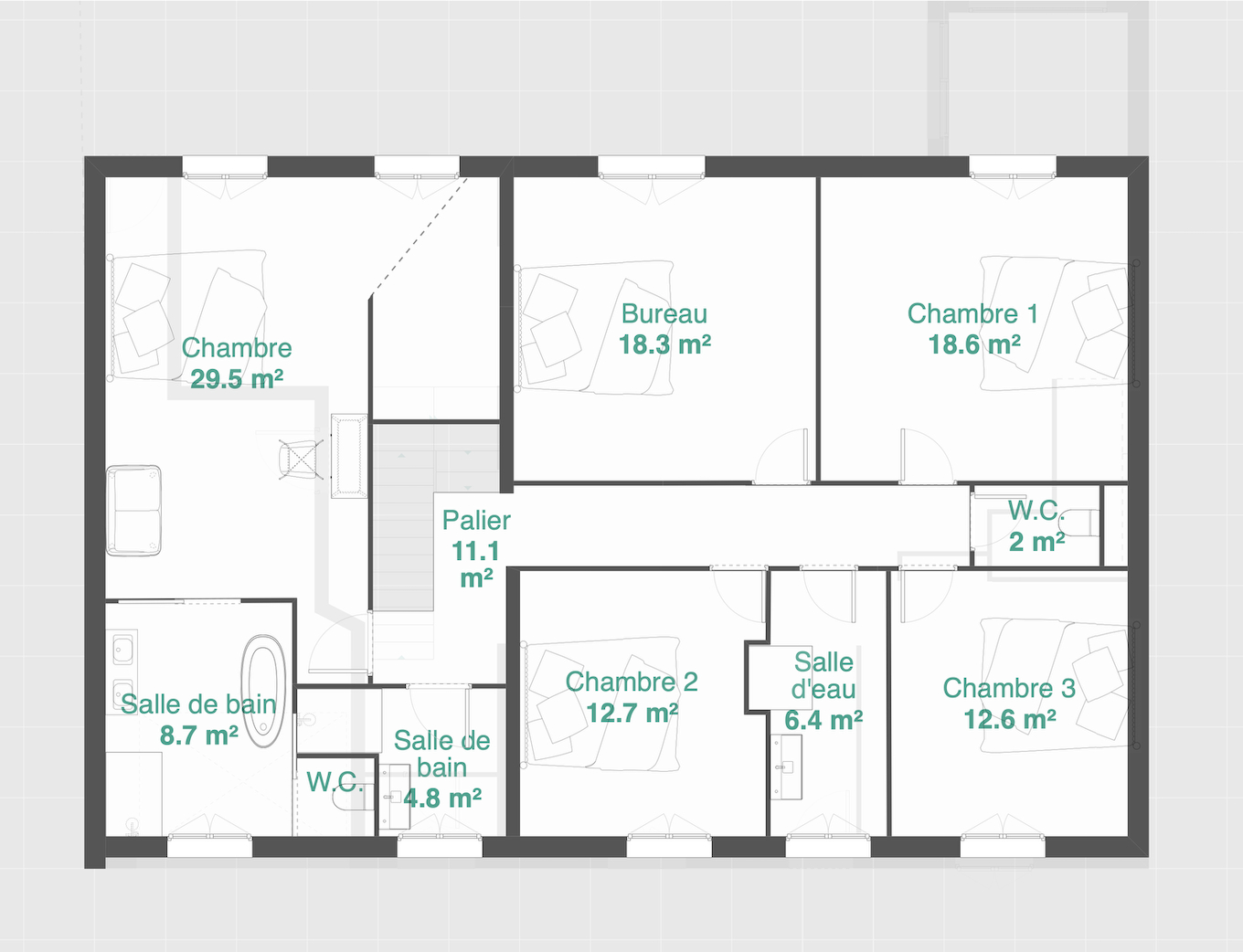 Autre avantage de la maison, son sous-sol de 60 m2 prévu pour être aménagé en buanderie, salle de cinéma et cave à vin. Modifiable selon vos hobbies, salle de sport par exemple.