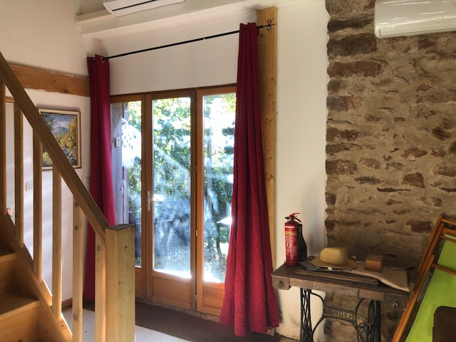 Elle se compose au RDC D'un salon / séjour avec une cuisine ouverte , d'une salle de bain et d'un WC . Une autre pièce attenante , salon /détente équipé d'un poêle a bois et d'une sale d'eau avec une chambre au dessus .