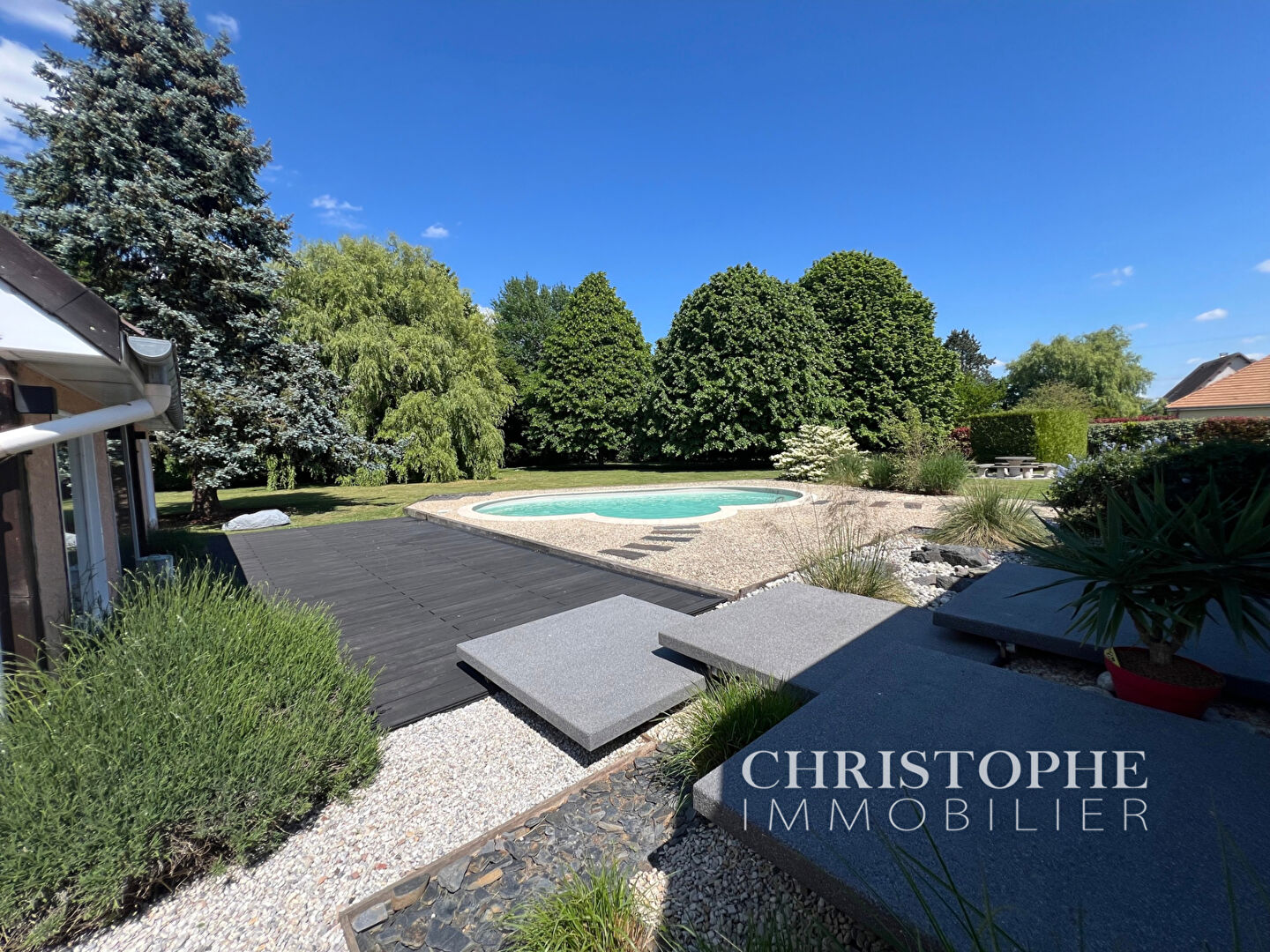 Terrain paysagé de 4.000 m² avec terrasse et plage de piscine