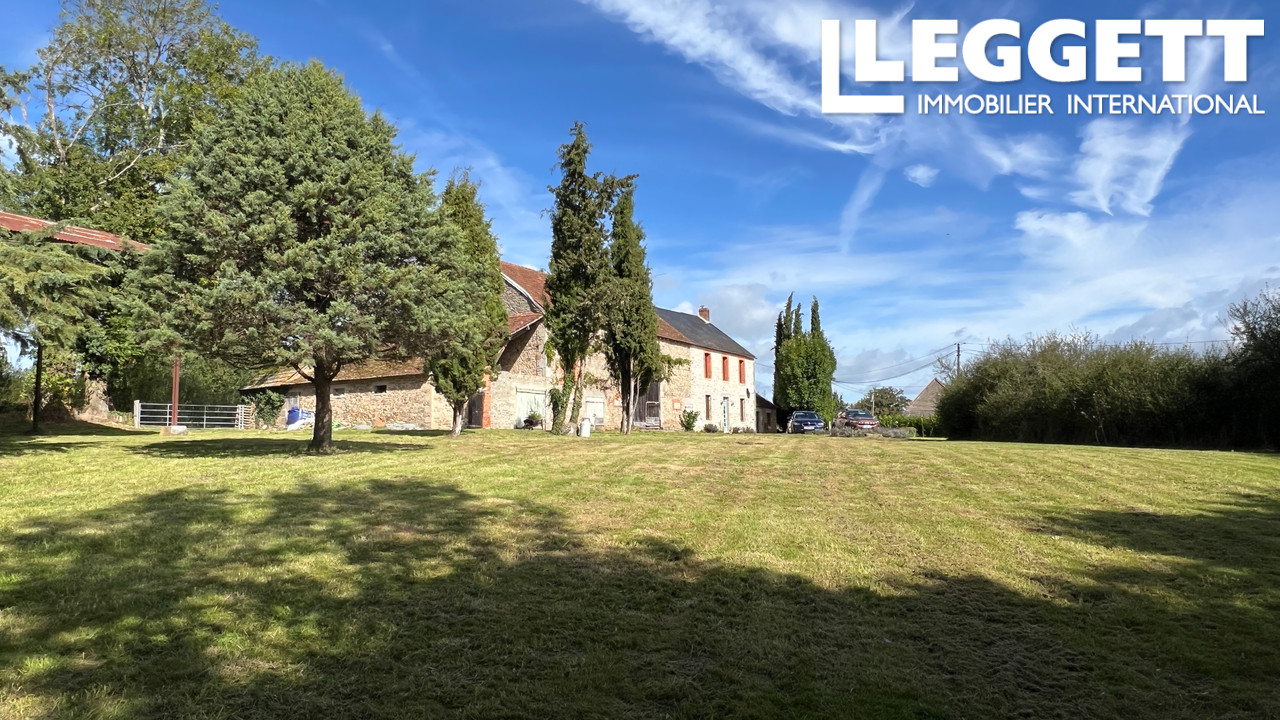 A32544MKE23 - Non loin de la jolie ville rurale de Gouzon, mais située dans une très belle campagne, dans un hameau de seulement 2 autres maisons occupées, dont la plus proche est à plus de 100 m, la propriété est un havre de nature et de paix et de tranquillité.