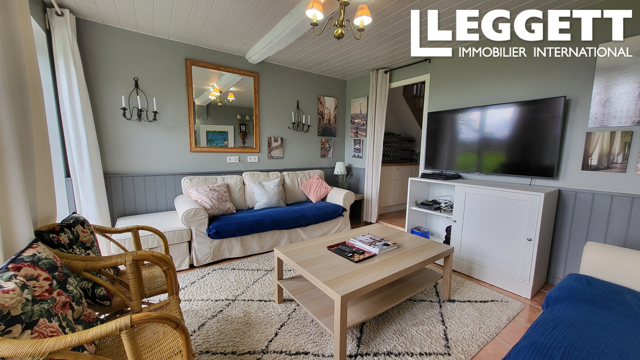 Au rez-de-chaussée: Séjour avec coin cuisine et cheminée, salon, Salle d'eau avec WC.
