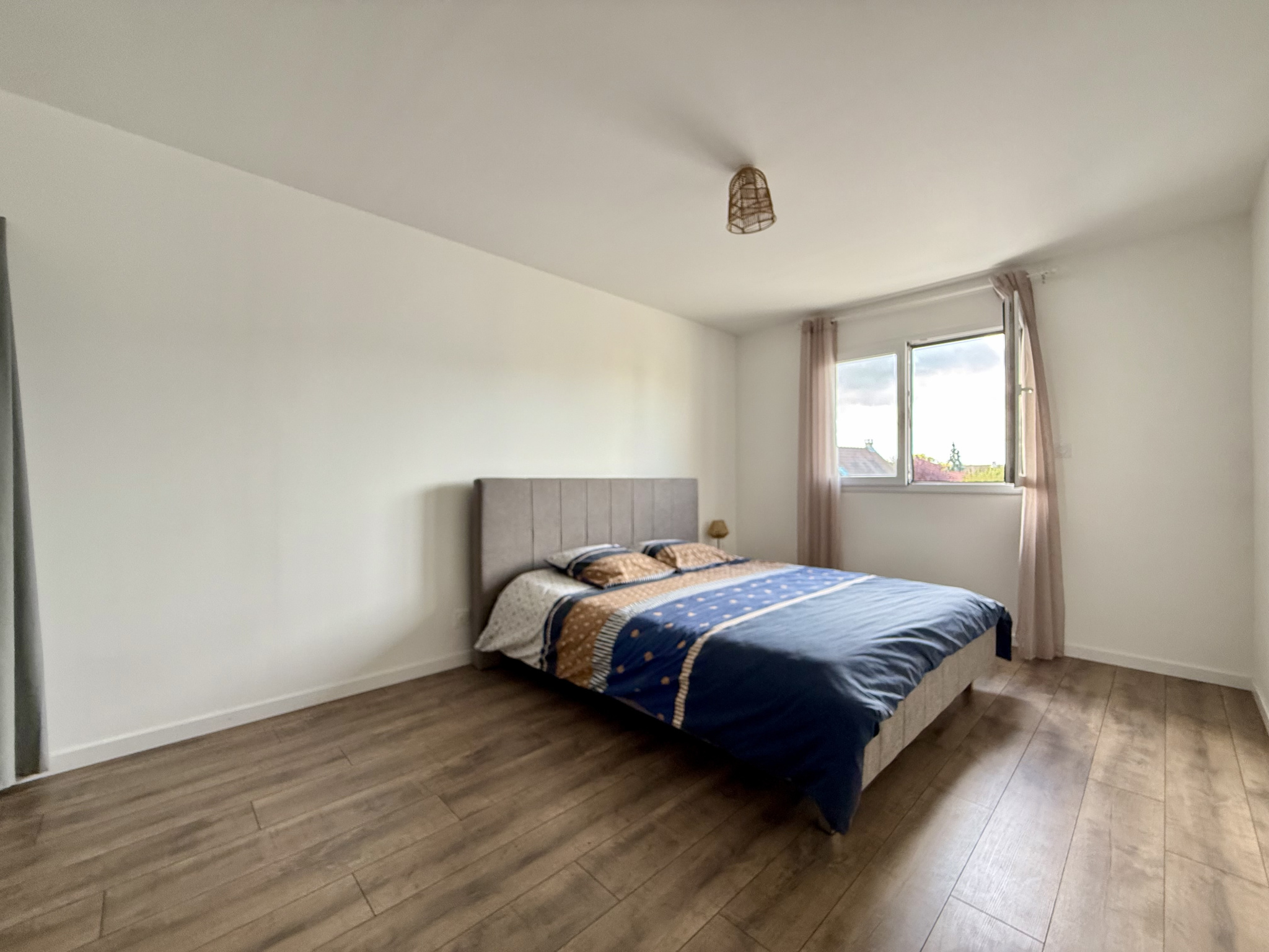 L'étage offre trois chambres avec placard, wc séparés et une grande salle de bains (avec douche et baignoire). Garage et jardin. Fonctionnelle et confortable, cette maison est vendue avec ses meubles. Commodités, écoles et gare au sein du village.