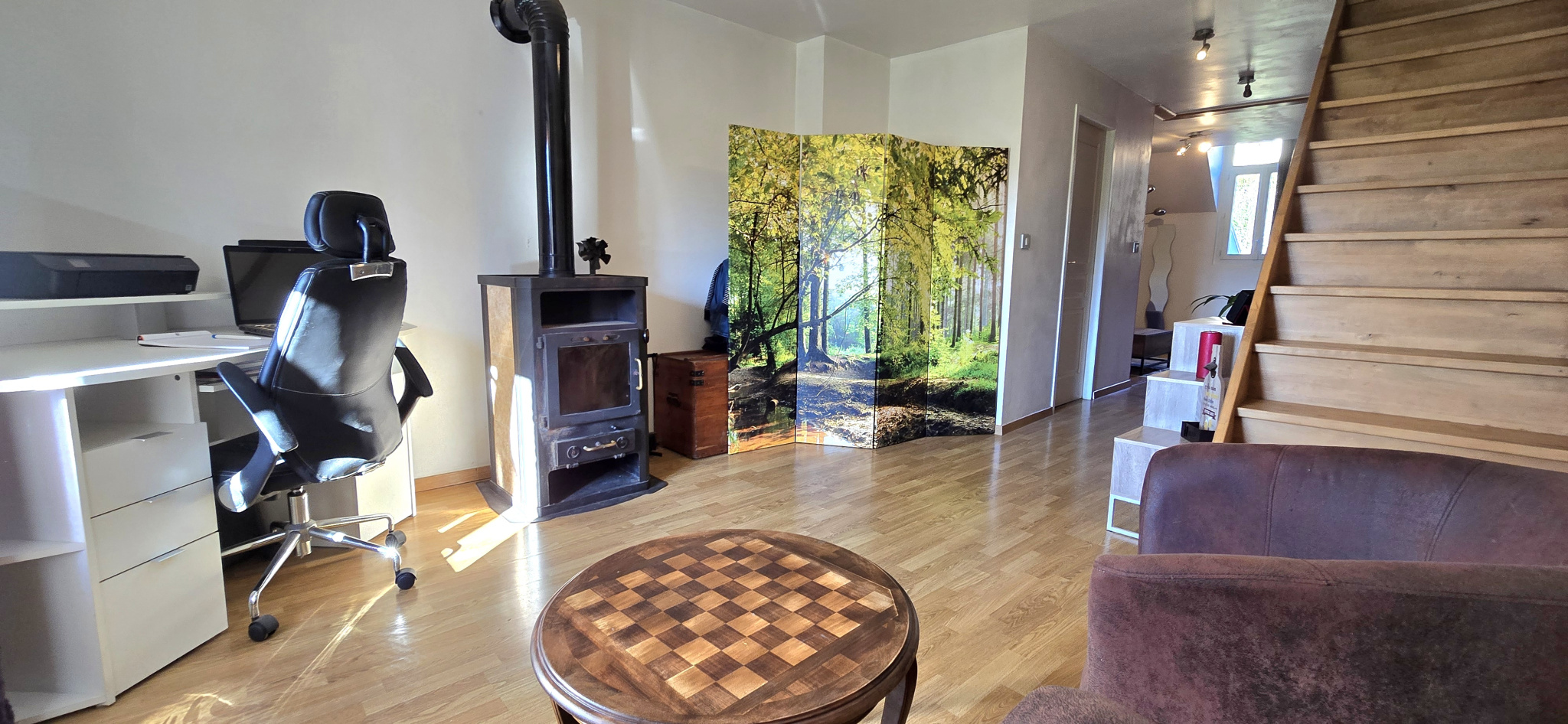 Au deuxième étage, vous disposerez d'une chambre et d'un bureau.