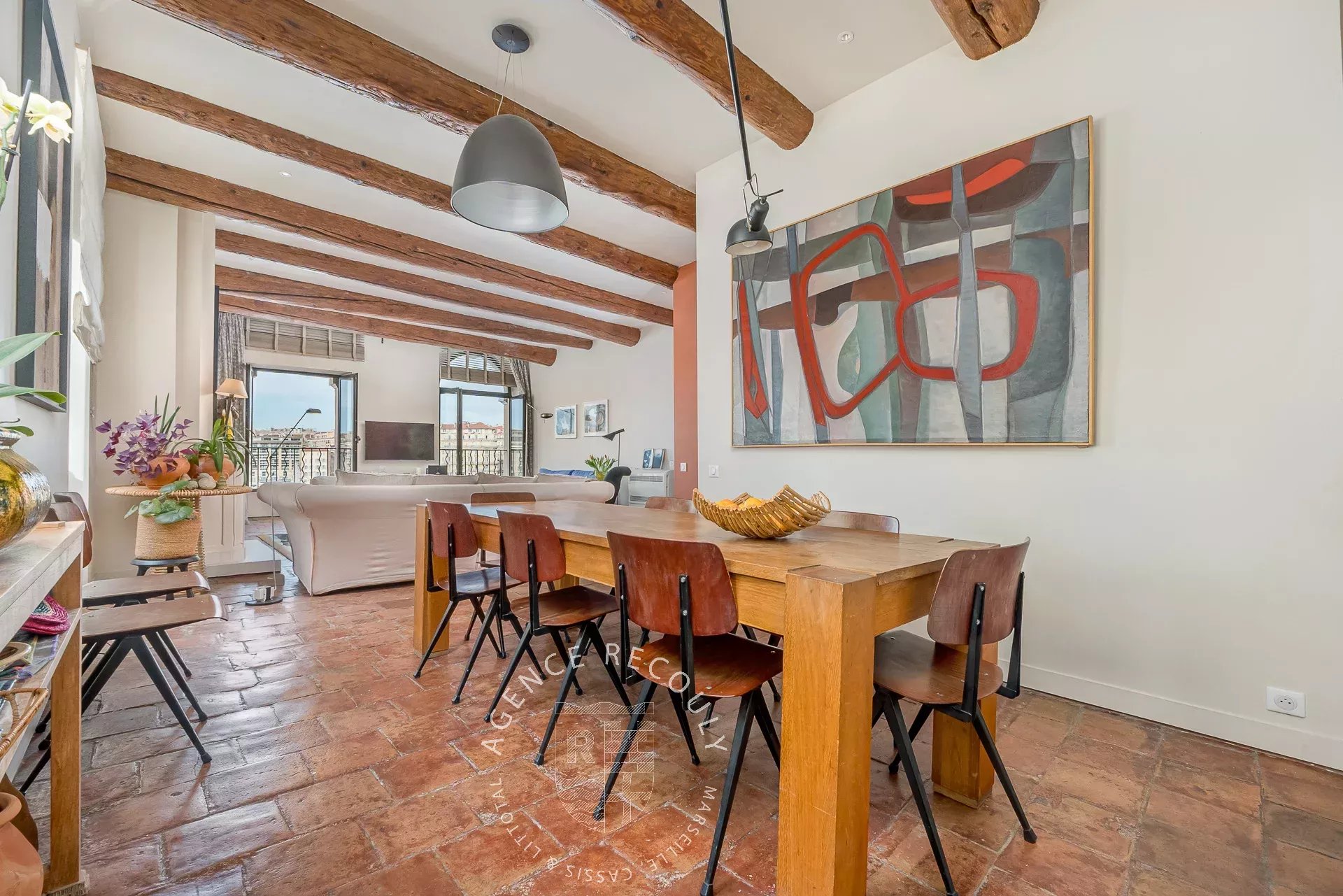 Idéalement situé en première ligne face au Vieux-Port, niché dans un ancien arsenal venez découvrir cet élégant appartement T4 de 143 m2 carrez entièrement rénové, il conjugue à la perfection élégance, raffinement et confort contemporain avec une vue magnifique sur le Vieux Port.