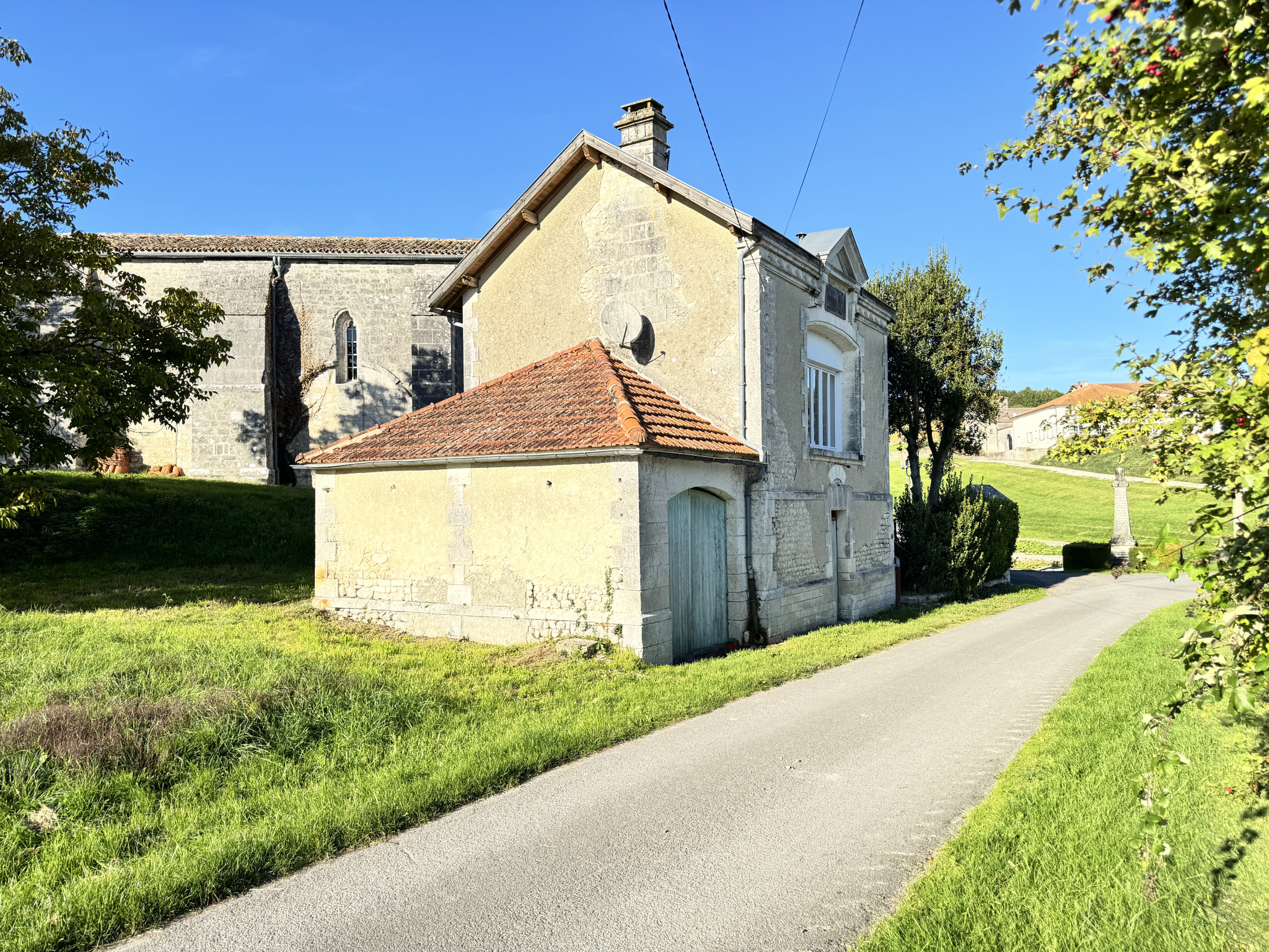 Sud ANGOULEME - Entre BARBEZIEUX et CHATEAUNEUF (16) - Au coeur de la vallée de l'Eglise de NONAVILLE, dans un environnement très agréable et très calme. Cette ancienne mairie qui était à l'origine une mairie est une superbe base pour se créer un nid douillet. Cette solide bâtisse de 1906 est en bon état de gros-oeuvre. Compteurs d'eau et d'électricité en place. Au rez-de-chaussée, pièce sur terre battue de 35 m2 et garage de 16 m2. Au rez-de-jardin, accessible par le péron, pièce de 35 m2 avec mezzanine de 25 m2 au dessus sous charpente apparente. Au total, 80 m2 habitables possible plus garage. La grande fenêtre est en double vitrage. Eau chaude par cumulus et radiateur électrique. Aucune isolation. Assainissement à créer. Terrain attenant d'environ 3000 m2 avec ruine à 50 m au dessus. Autre parcelle de terrain à 300 m de 5000 m2. Le lieu est magique, la route n'est pas du tout fréquentée, la situation est vraiment remarquable. Idéal pour primo accédant, investissement locatif, résidence secondaire et pour ceux qui aiment la belle pierre. Exclusivité !
