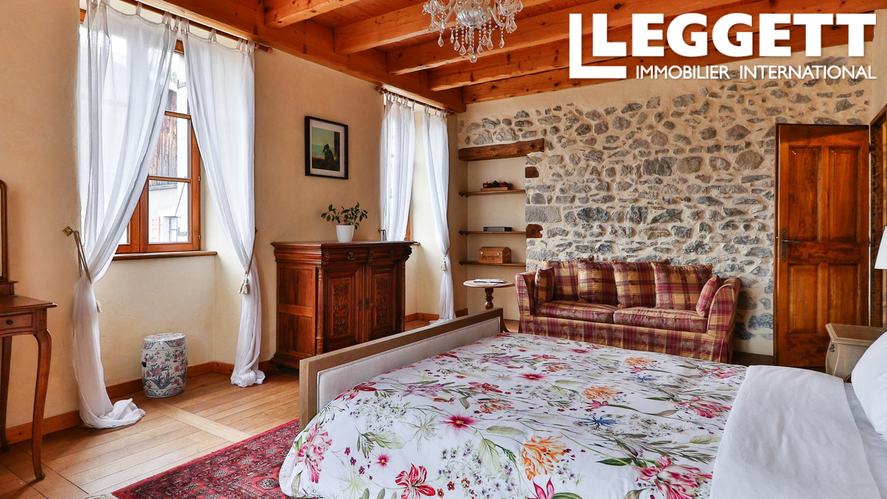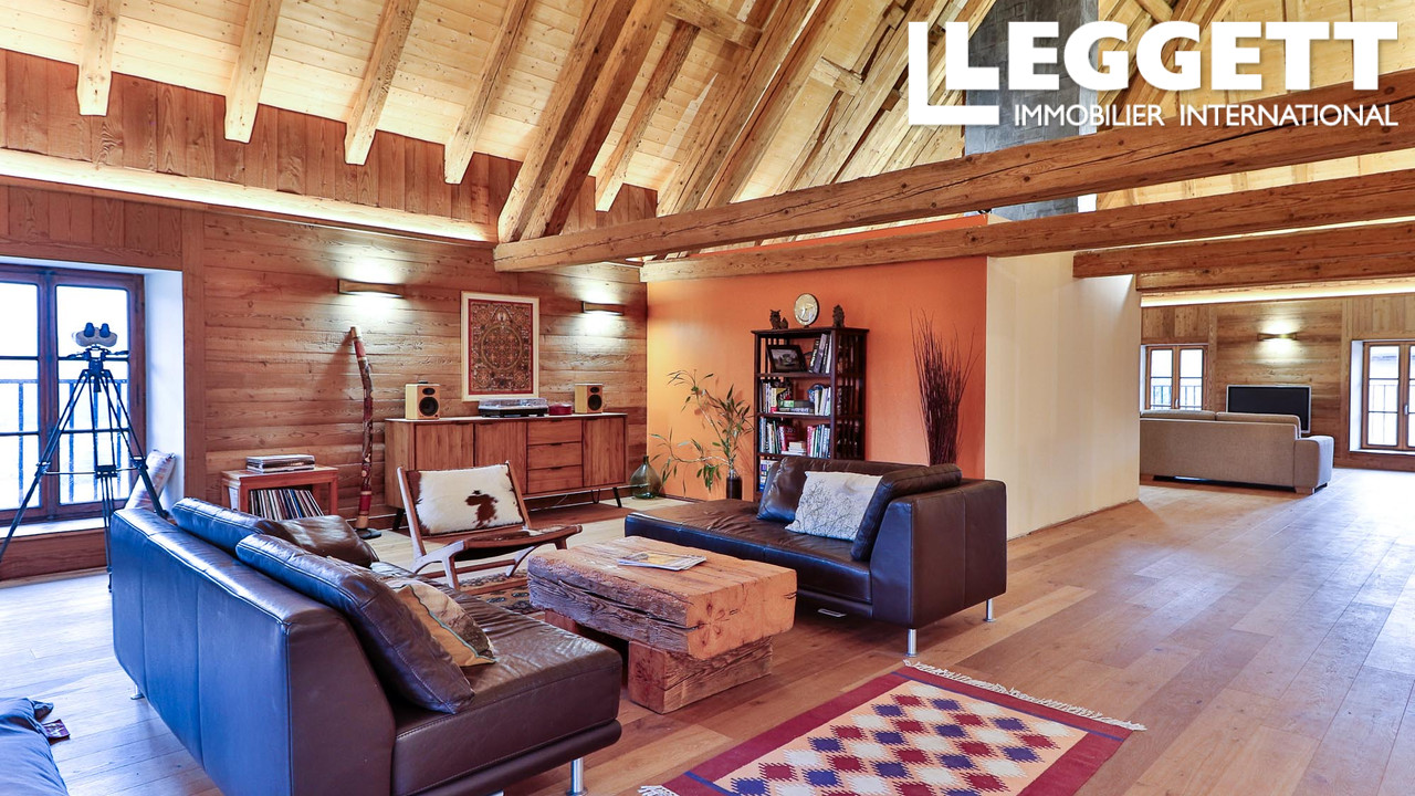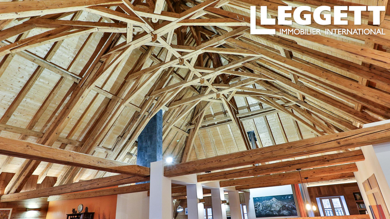 Alliant charme et luxe, elle conserve des éléments d'époque tels que des sols en pierre naturelle et un majestueux plafond en bois voûté dans la grange aménagée. Avec 6 chambres, plusieurs espaces de vie, un grand jardin, des terrasses et des logements flexibles, elle est idéale comme maison de famille ou retraite alpine.