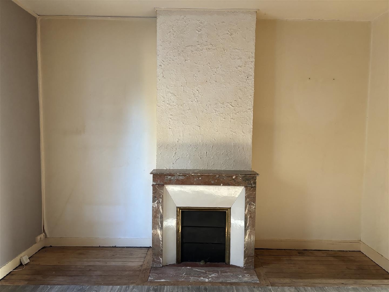 entrée, séjour/salon avec cheminée, cuisine, 4 chambres, salle de bains avec WC, cabinet de toilette.