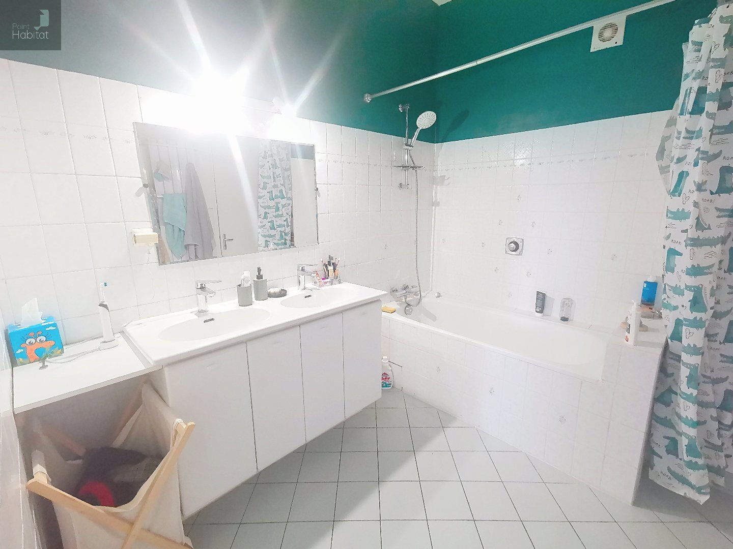 Trois belles chambres avec des volumes généreux, une salle de bain avec un espace dédié à la machine à laver ainsi qu'un toilette indépendant.