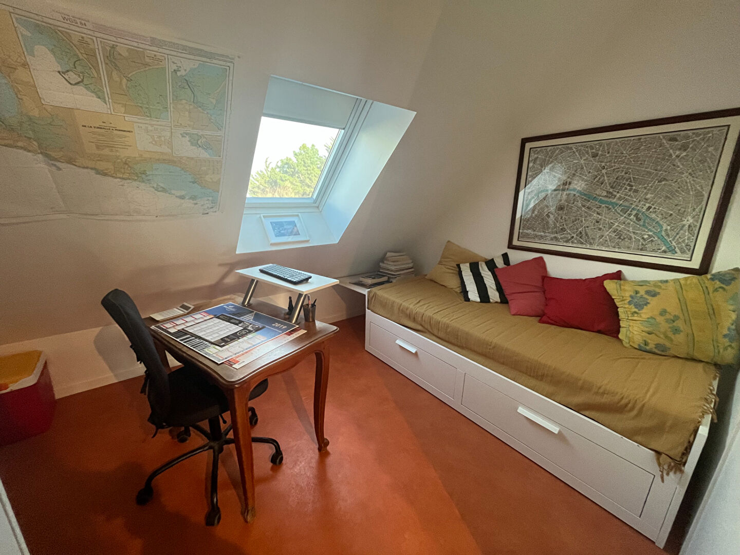 À l'étage, une chambre en mezzanine, ainsi qu'une seconde chambre mansardée, cosy.