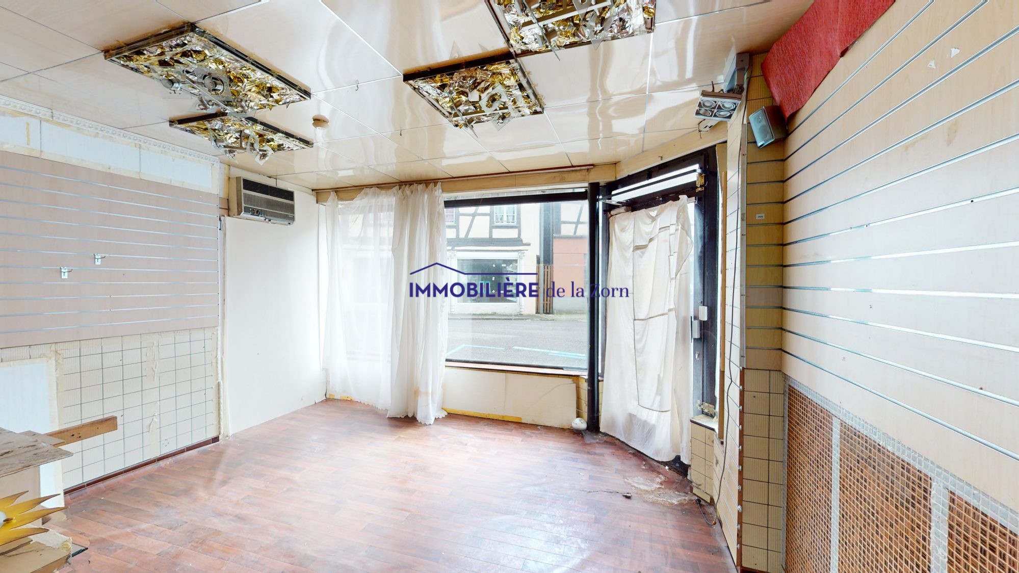 La maison se compose d'un vaste espace d'habitation d'environ 180m², d'un local commercial avec vitrine et chambre froide et d'un batiment annexe pouvant être aménagé.