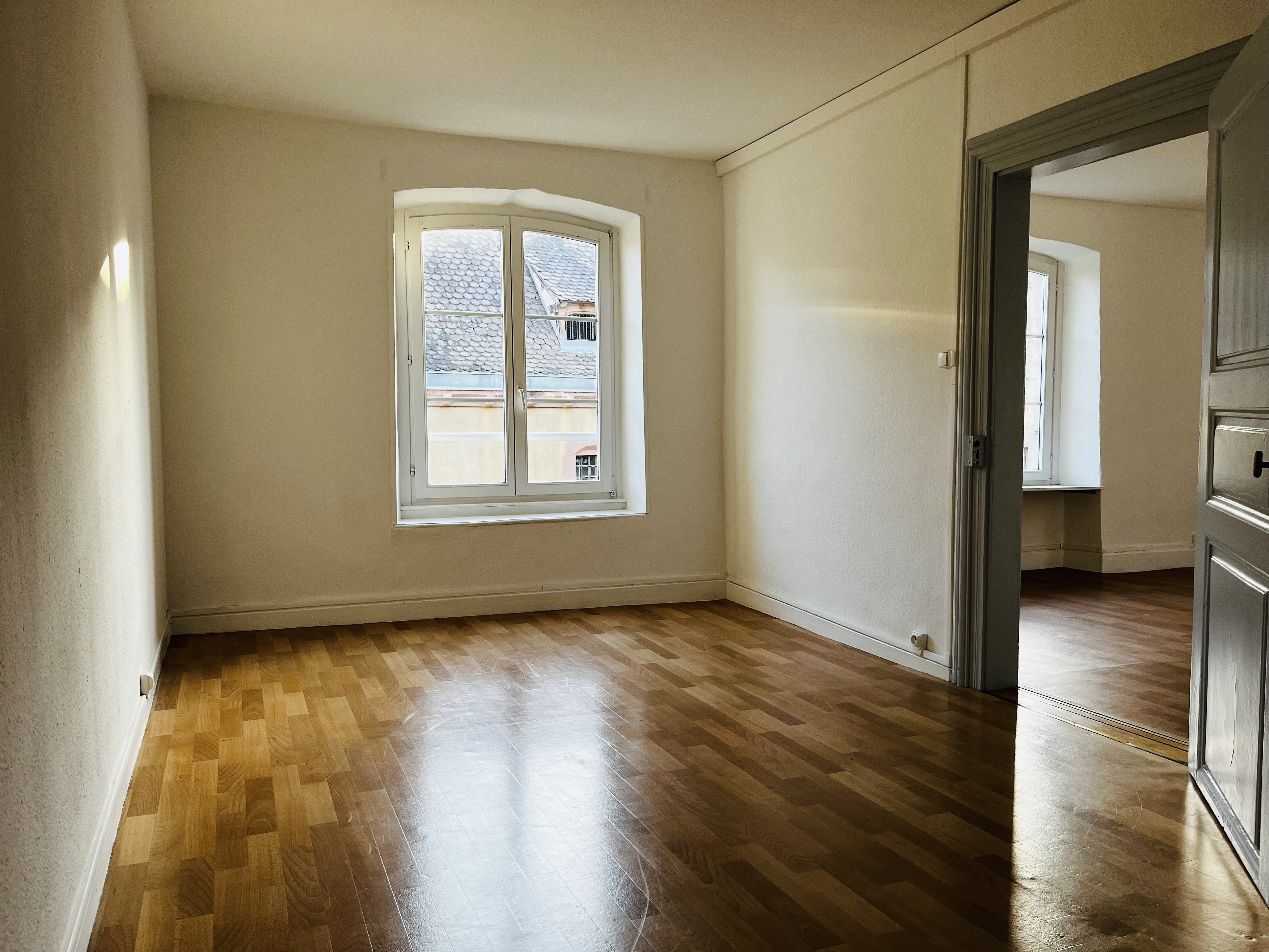 Au coeur du centre-ville, dans bâtisse de 1750, lumineux T2 de 49 m² au 3ème étage, sans ascenseur, comprenant : entrée, cuisine équipée, salle d'eau avec wc, chambre, séjour.