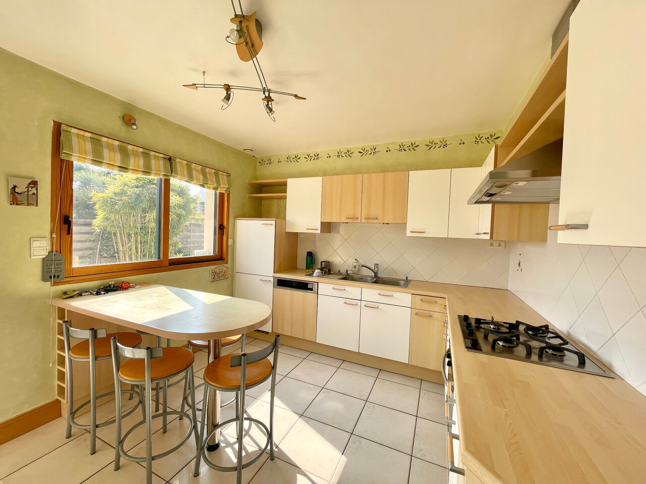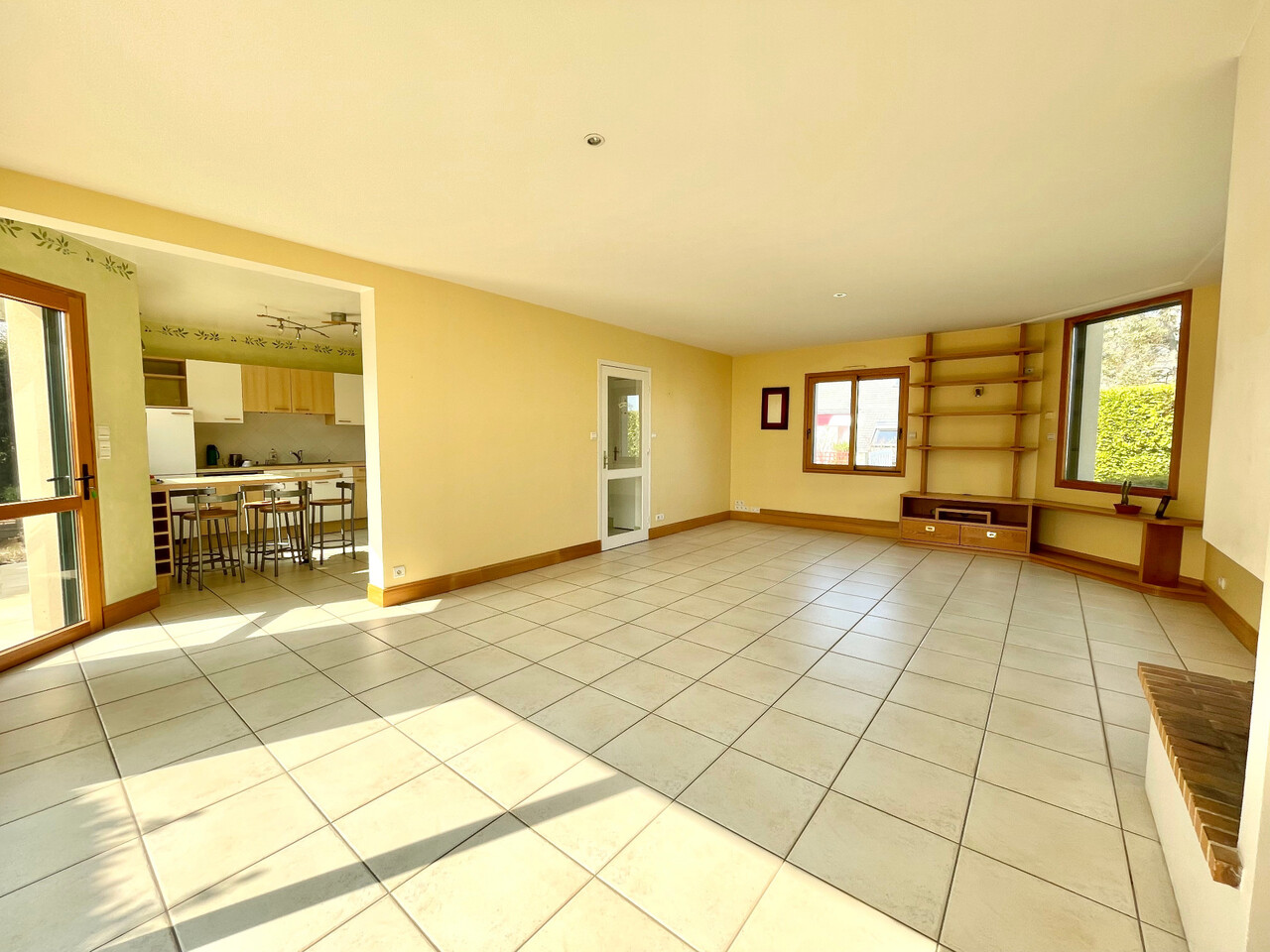 - Au rez de chaussée : hall d'entrée avec placard, belle pièce de vie avec cheminée ouvrant sur terrasse et jardin sud, salon dans extension, cuisine équipée ouvrant sur terrasse et jardin sud, une chambre, salle d'eau, WC et buanderie;