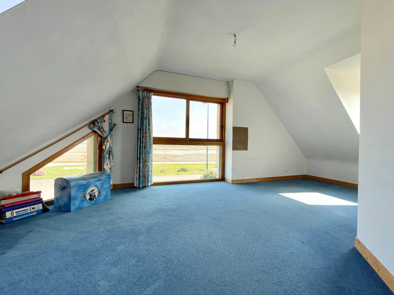 - A l'étage : spacieuse mezzanine avec vue sur la baie, 2 belles chambres, salle de bains et WC;