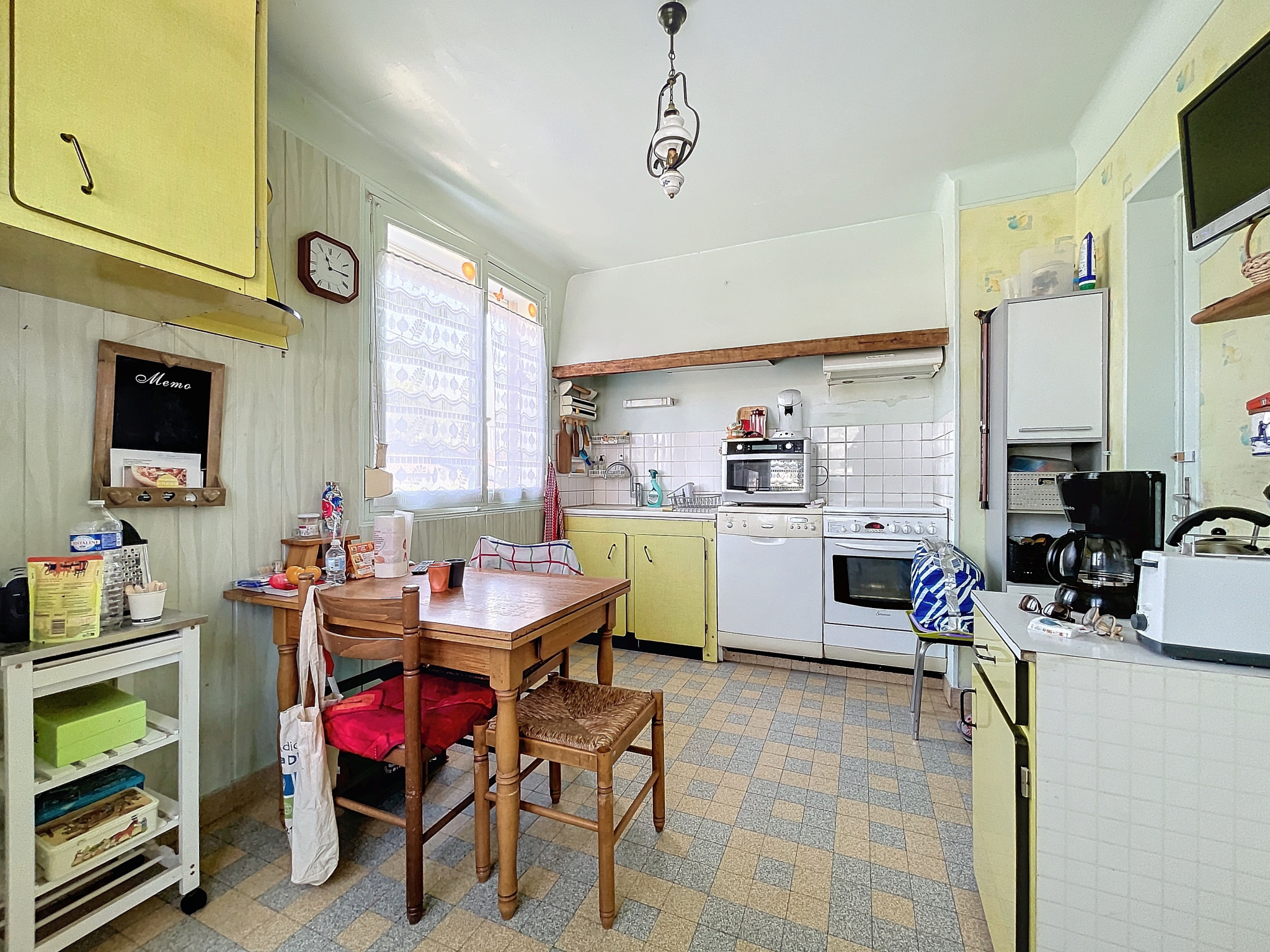 Au rez-de-chaussée : une entrée, une cuisine aménagée & équipée, un séjour avec cheminée insert, une belle véranda exposée plein SUD, un couloir, une salle d'eau, un WC, un placard/dressing et deux belles chambres (14,28 m2 et 11,59 m2).