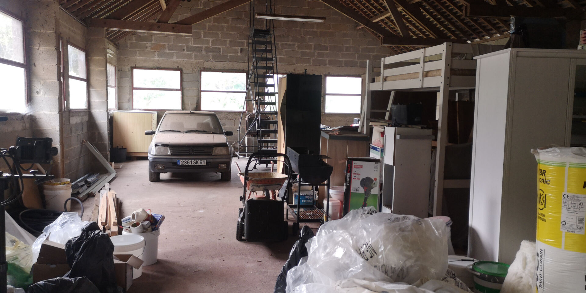 Grand atelier indépendant ( env.125 m2 au sol), idéal pour bricoleur, entrepôt, artisan, artiste.... + sous-sol ouvert pour stockage
