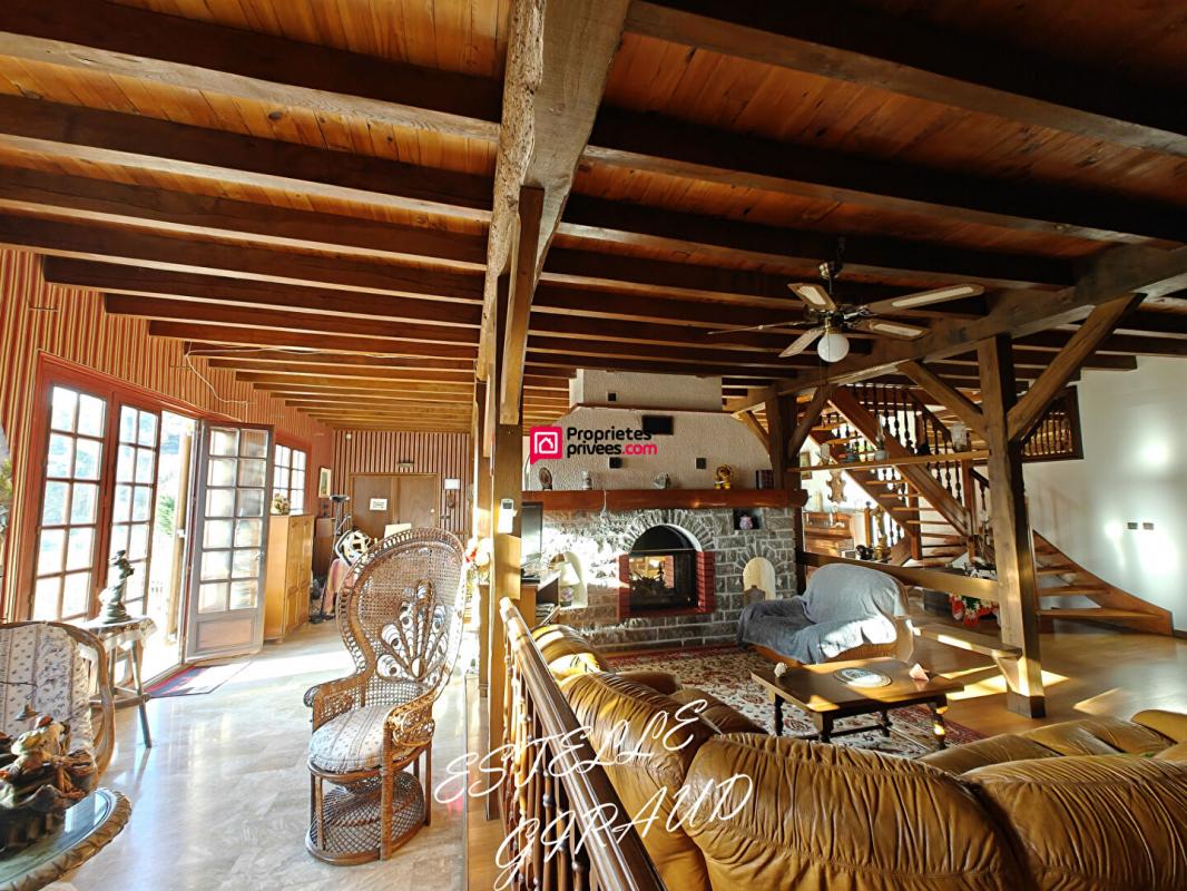 Le grand séjour, véritable coeur de la maison, séduit par sa cheminée à insert fermé, idéale pour les soirées d'hiver. Avec ses espaces dédiés : un coin bar, une salle à manger et un espace lecture. Ce lieu respire la convivialité.