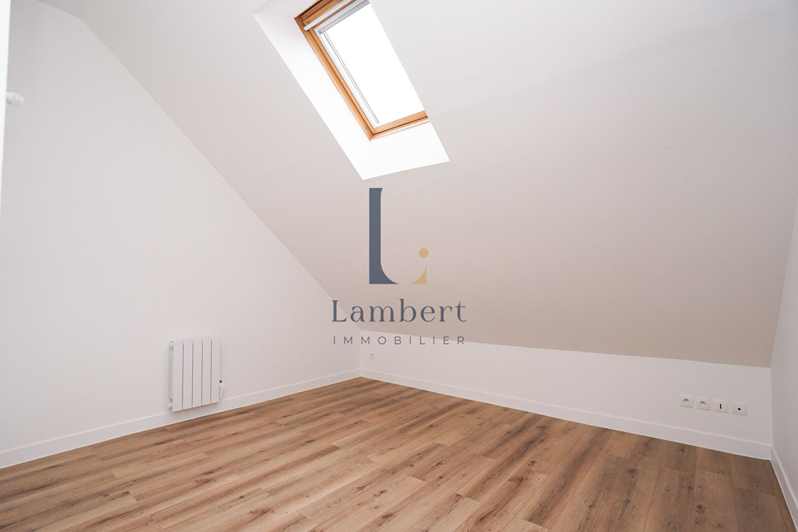 Une grande cuisine équipée ouvre sur le salon, puis la salle de bains et la chambre. Les mansardes lui confèrent un charme supplémentaire et une surface non comptabilisée (48m² au sol) mais utile.