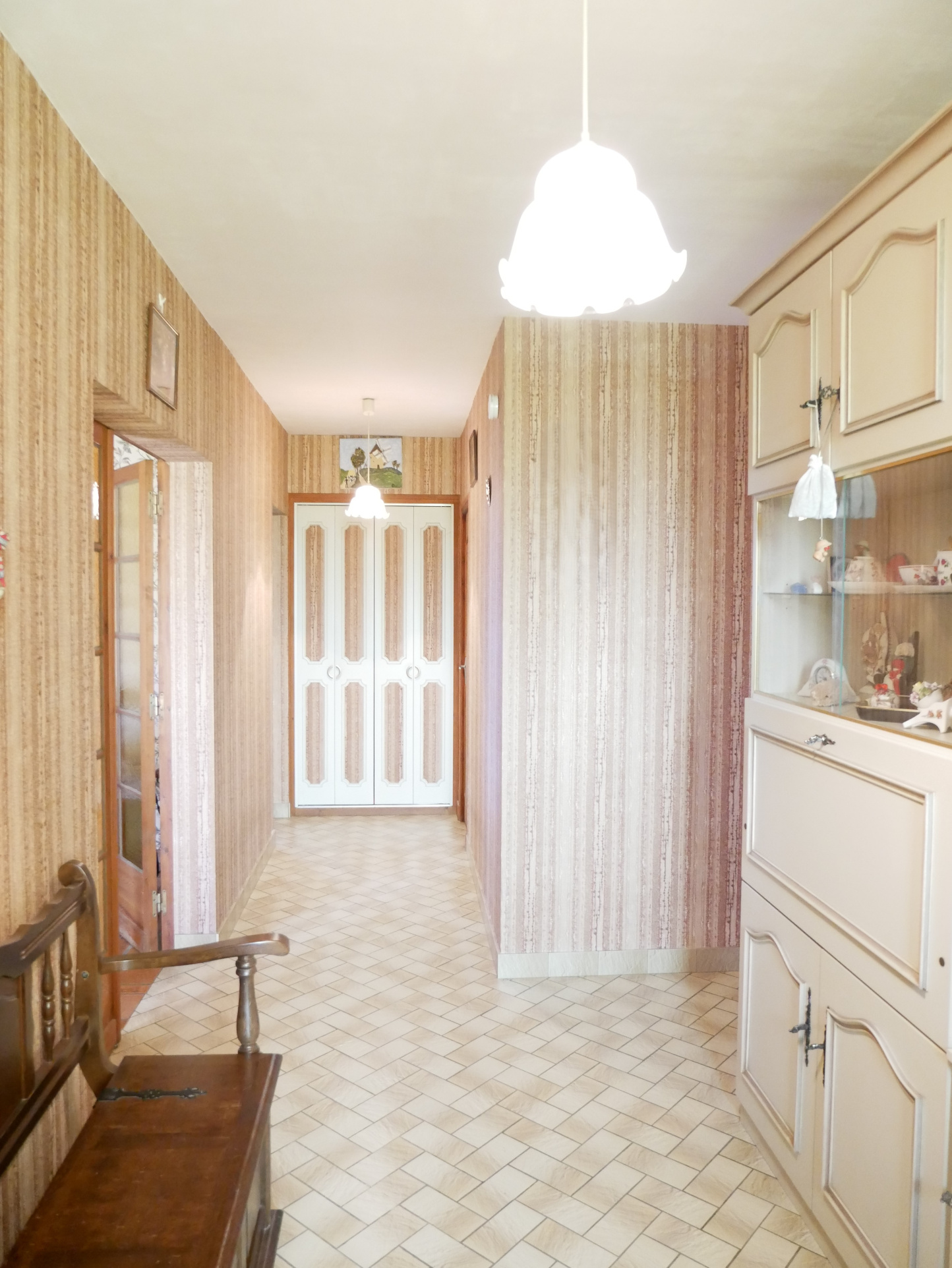 L'entrée spacieuse avec placard intégré ouvre sur un vaste séjour lumineux, traversé par la lumière naturelle grâce à de grandes ouvertures offrant une belle vue sur le jardin. La cuisine séparée s'ouvre sur une terrasse d'été conviviale, idéale pour profiter des repas en plein air. Une arrière-cuisine et une buanderie viennent compléter l'ensemble et apportent un confort supplémentaire au quotidien.