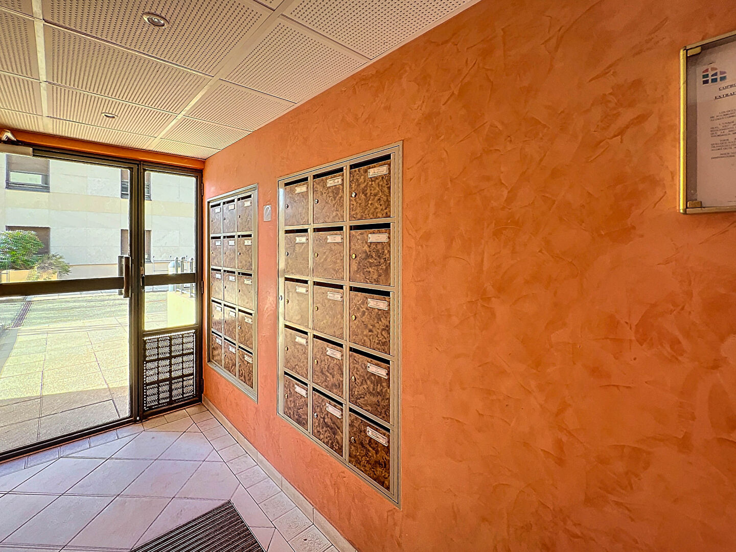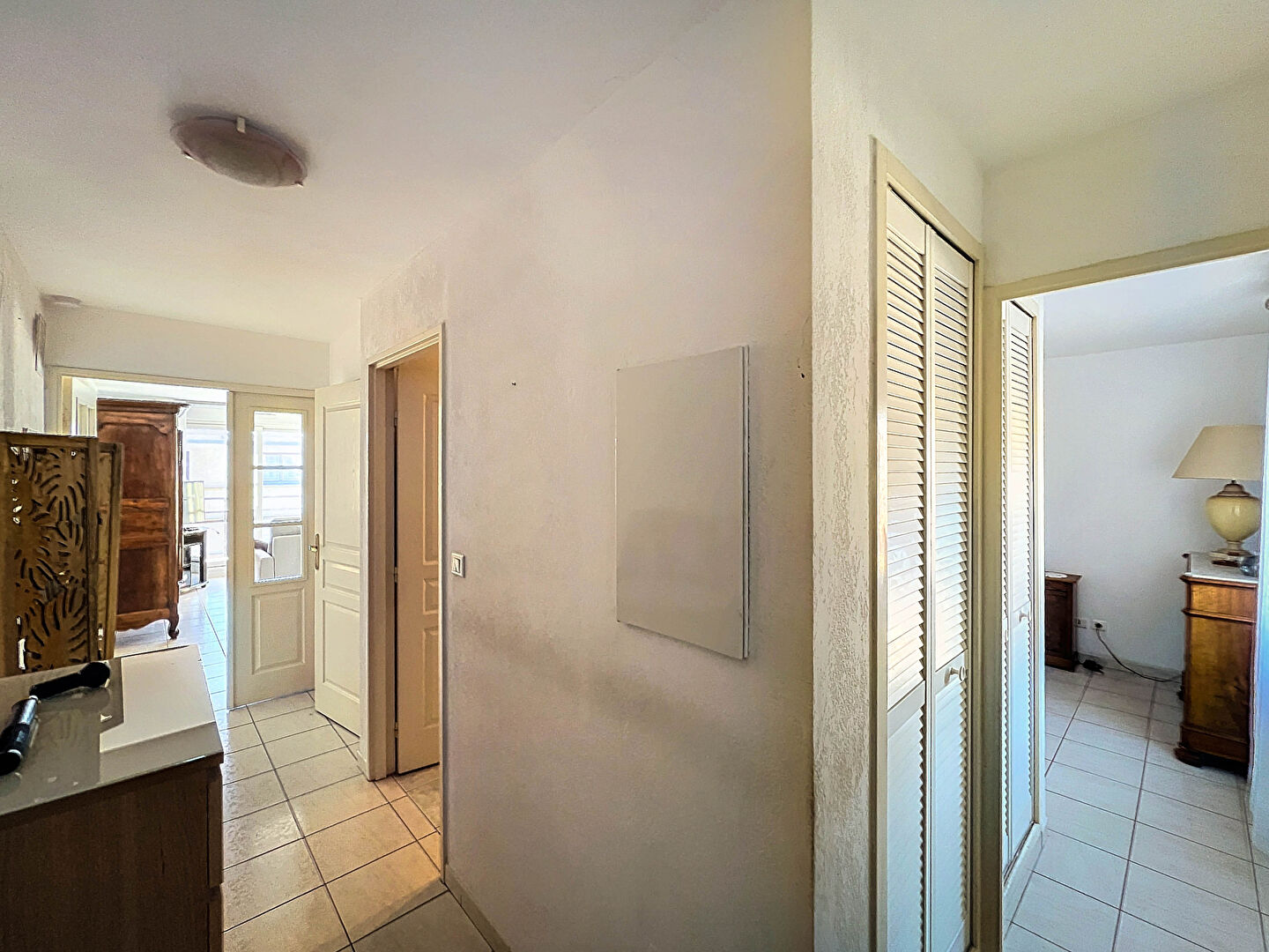 La disposition des pièces est parfaite avec une entrée avec placard. Celle ci done sur une chambre avec un frand placard mural et une vue sur le cloitre.