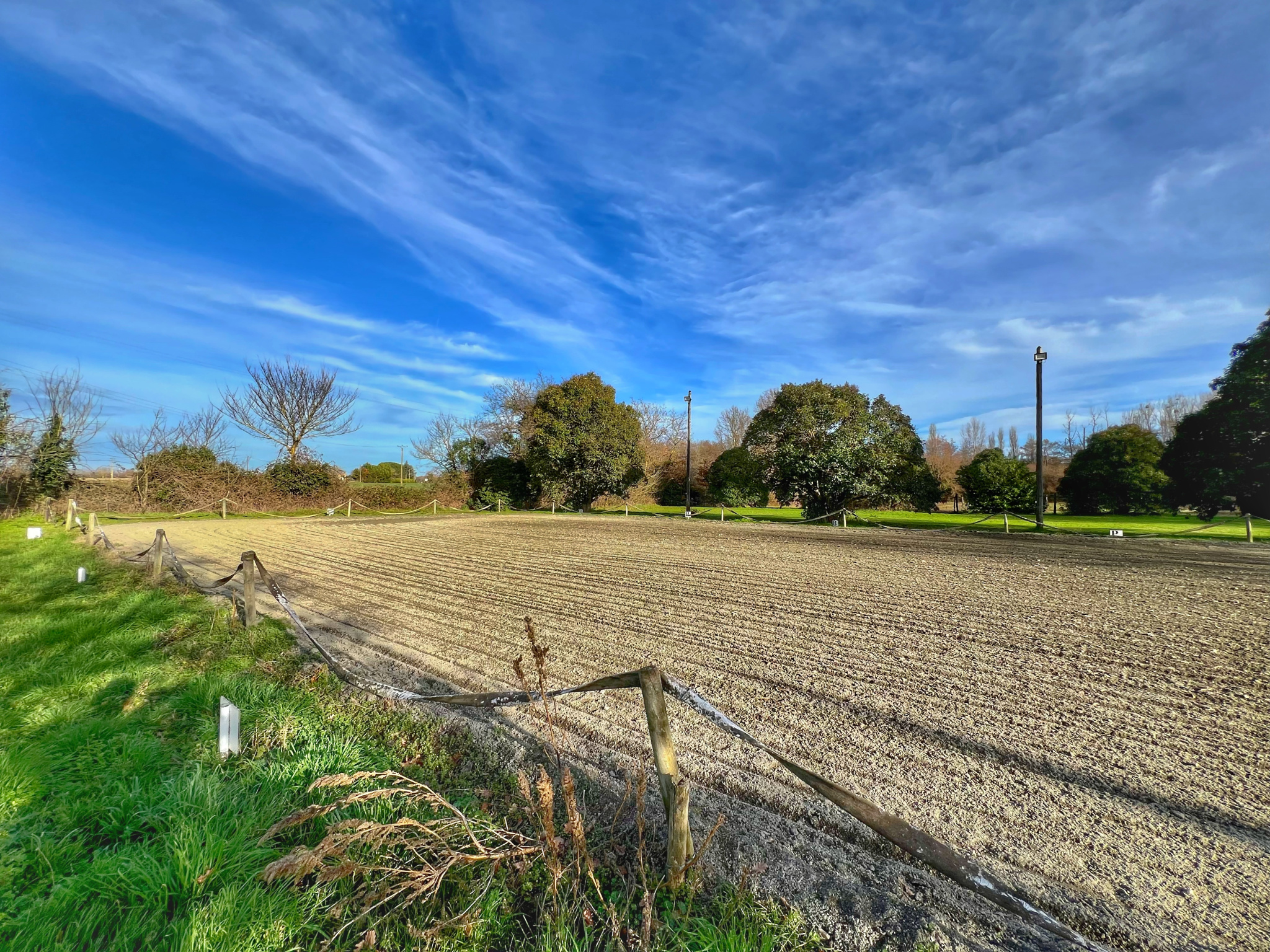 Deux carrières (40x20 m), dont une en sable de rivière éclairée et une en herbe sablée,