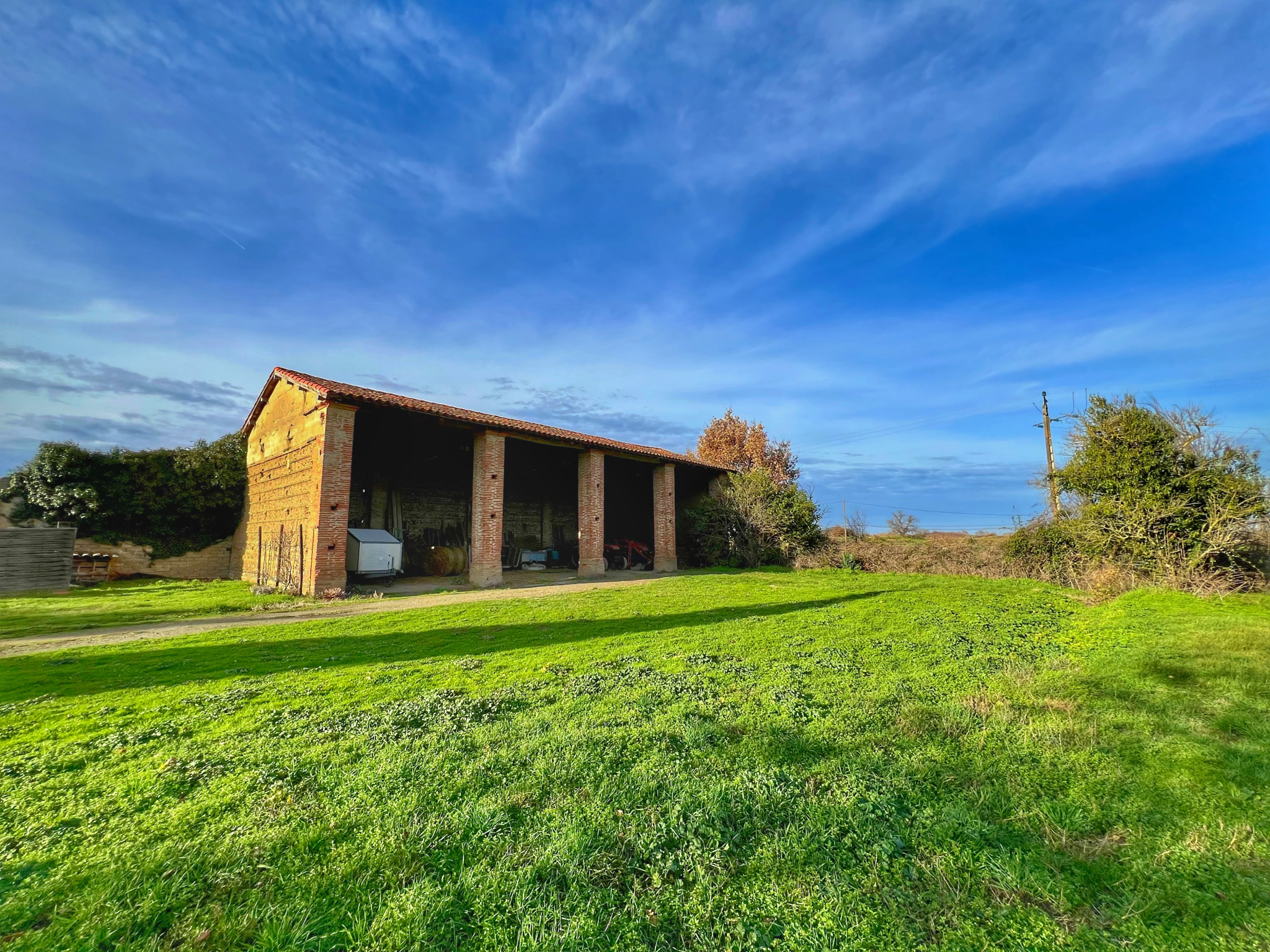 Implantée sur un terrain de plus de 4 hectares, la propriété bénéficie de nombreuses dépendances dont un hangar en style toulousain briques galets de 200 m2 environ.