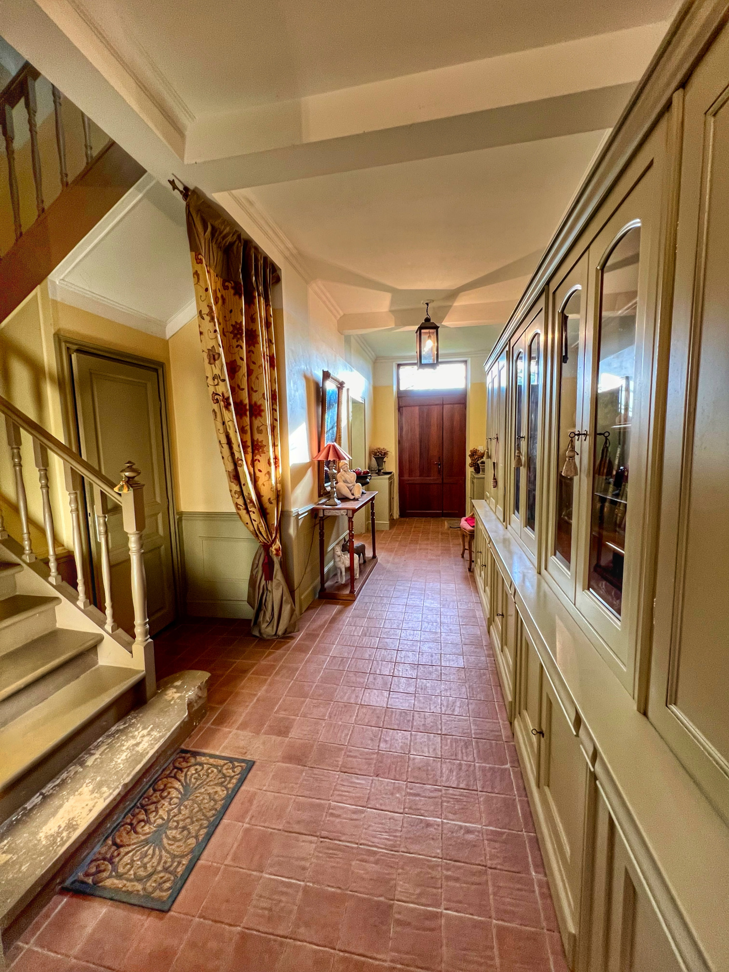 Cette ancienne maison bourgeoise développe environ 200 m2 habitables, répartis sur deux niveaux avec combles aménageables. Dès l'entrée, vous serez séduit par le cachet historique de la demeure : belle hauteur sous plafond, volumes généreux et matériaux anciens préservés.