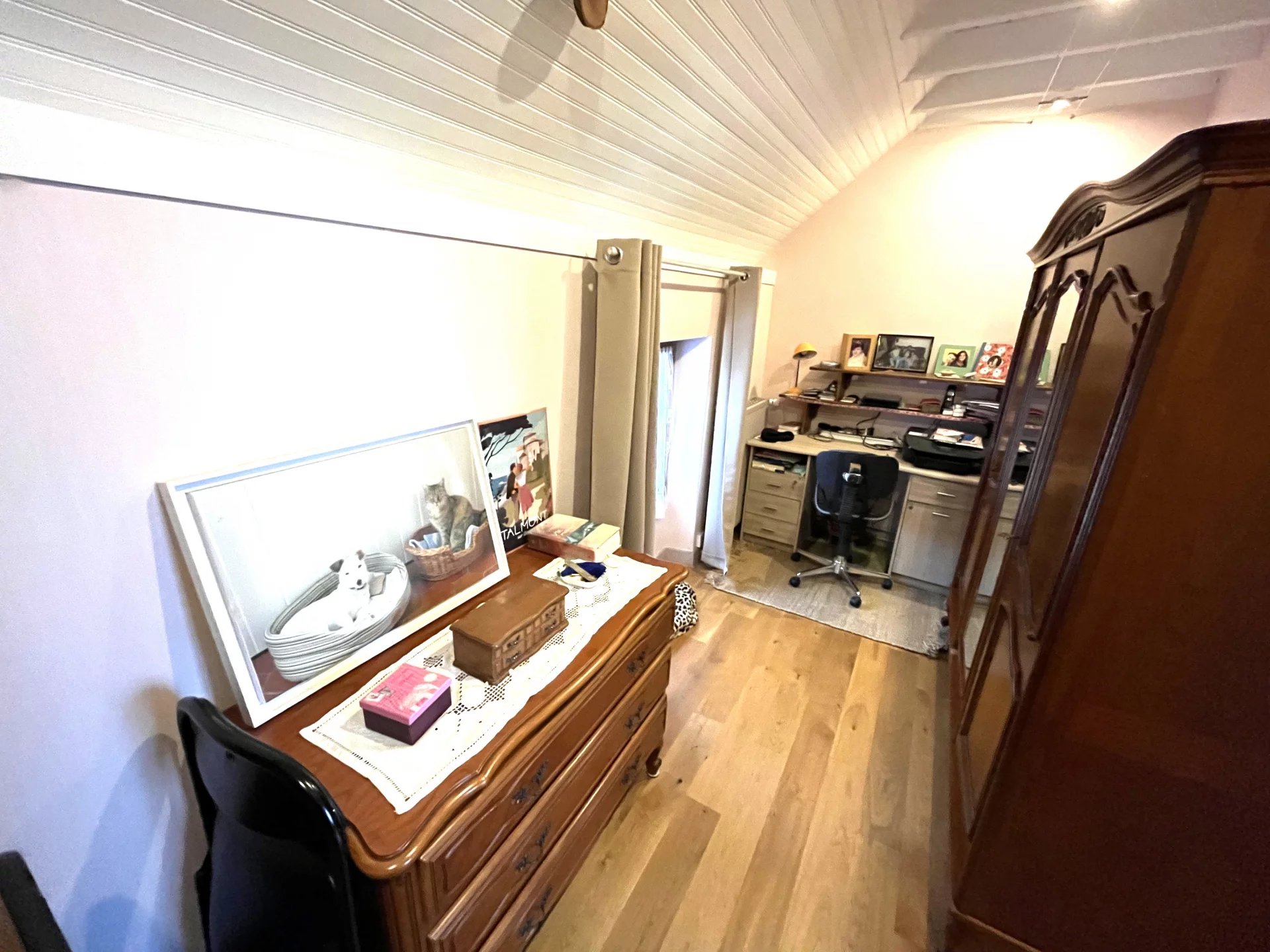 Une maison principale de 124 m² (4 pièces) comprenant : entrée, salon-séjour, cuisine équipée, 2 chambres, bureau, salle de bains, salle d’eau.