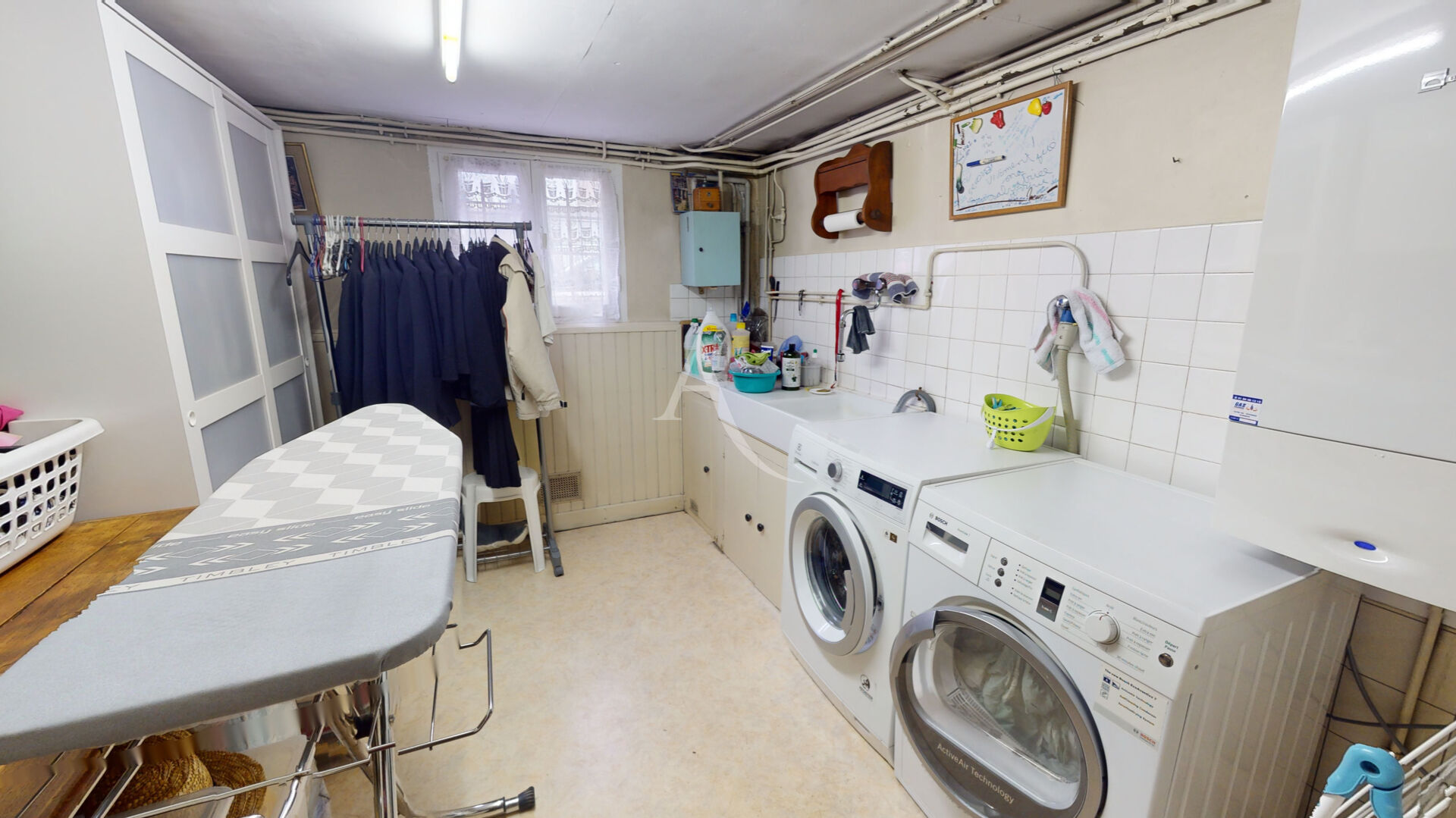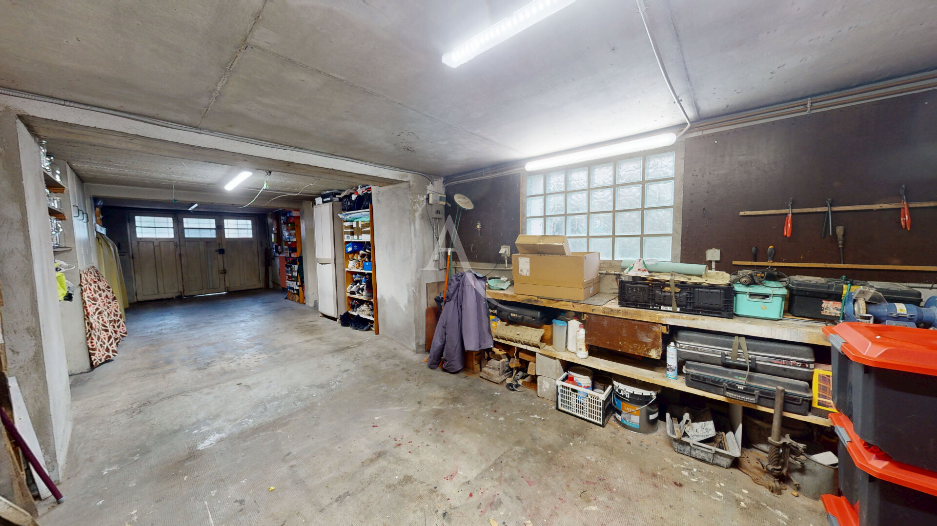 Un sous-sol complète ce bien avec un garage double et une buanderie, offrant de nombreux espaces de rangement.
