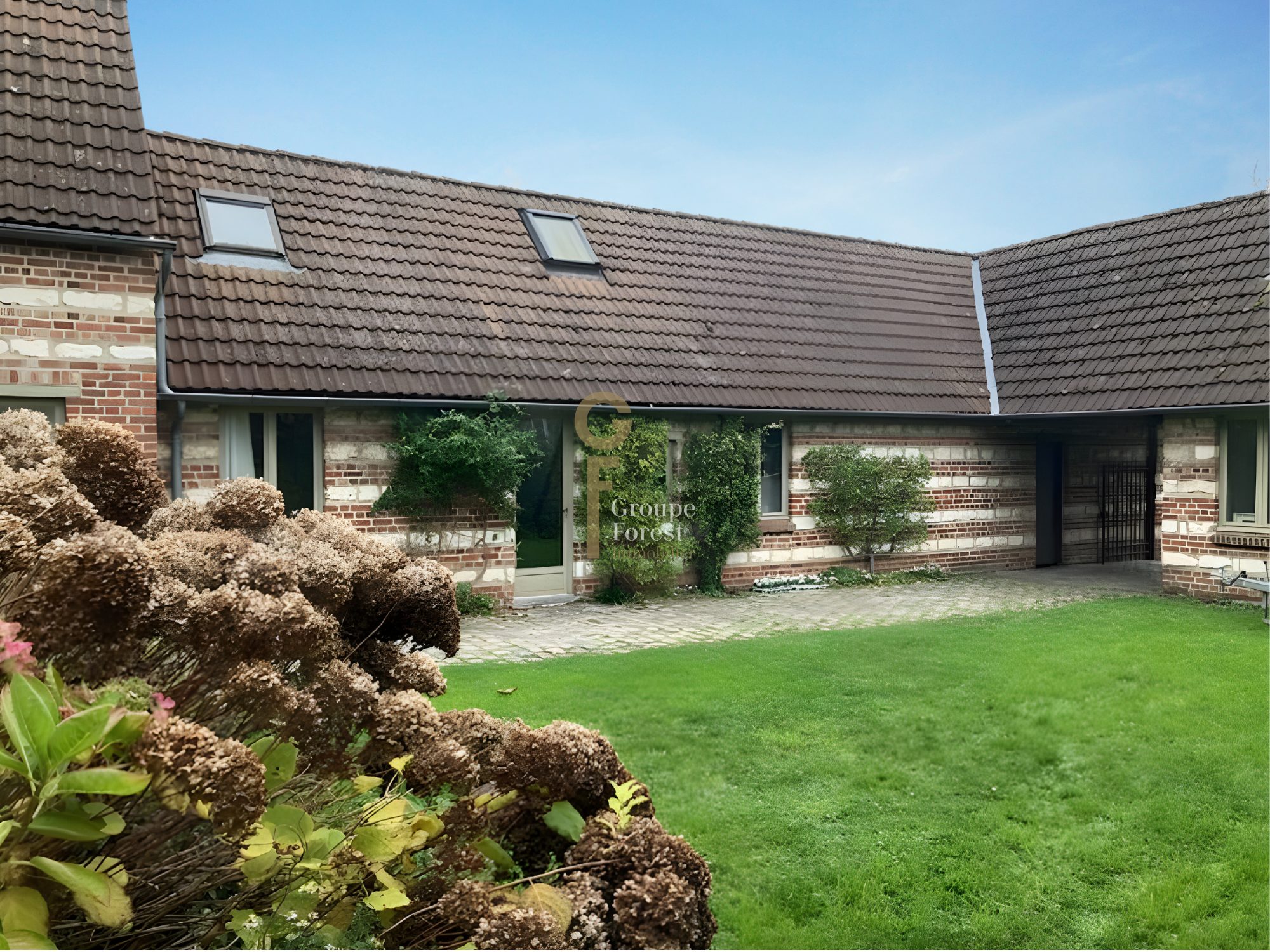 Exceptionnelle fermette construite en U avec des murs en Rouges Barres ( Typique du nord briques et pierres ) exposée Sud /Ouest avec porche d'entrée, La surface habitable est de 250 m2 environ et sa surface cadastrale de 960 m2.