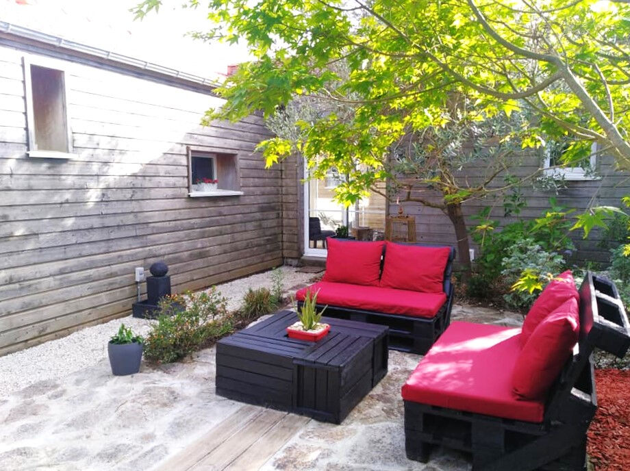 Dans un quartier CALME, proche de la PLAGE de Crève-Coeur, maison de PLAIN-PIED entièrement RÉNOVÉE de plus de 140m². Vaste entrée lumineuse desservant d'un côté un espace jour composé d'une cuisine-salle à manger de 20m², d'un salon adjacent avec accès à un patio et d'un wc ; l'espace nuit est composé de 3 chambres avec placard (dont une avec salle d'eau-wc) et d'une salle d'eau indépendante. Des espaces annexes, communiquants avec l'ensemble et disposant d'une entrée indépendante (un studio de musique, un atelier lumineux avec grenier et une buanderie) offrent de nombreuses possiblités (logement indépendant, espace d'activités professionnelles, etc.). Le terrain est entièrement clos et sans vis à vis. Il offre une place de stationnement , une cour, un jardin exposé sud ainsi qu'un un patio aménagé et végétalisé. VIVRE ICI LA BERNERIE Gueffier Immobilier.
