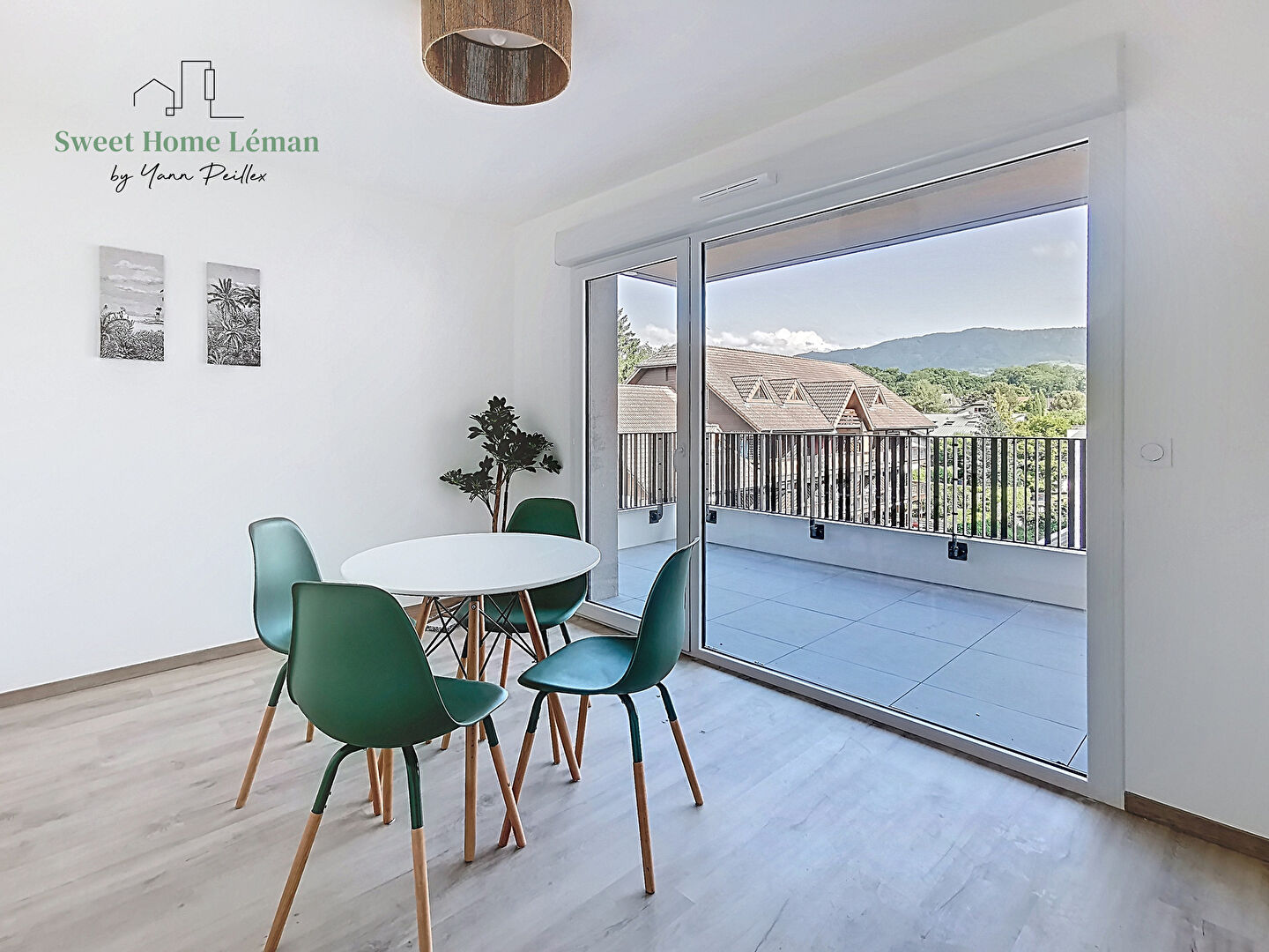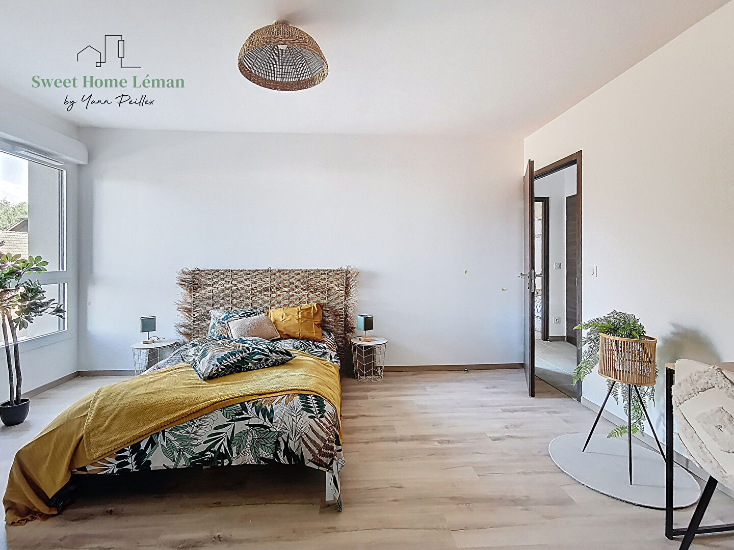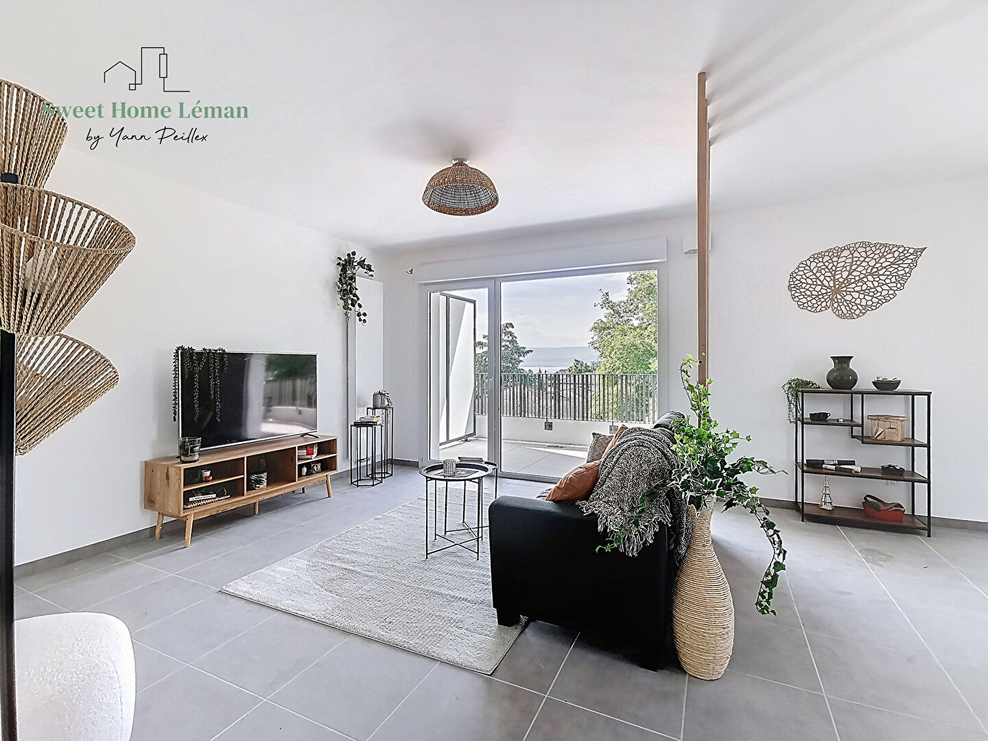 Dans quartier prisé de THONON, proche lac, école, bus, commerces,... dans nouvelle résidence, spacieux T4 de 108.61m² avec deux grands balcons. L'appartement se compose d'une entrée, séjour/salon/cuisine de 36m², 3 chambres , 2 salles d'eau, wc, 2 balcons de 24.76m² et 8.72m². possibilité de 2 garages en sous-sol (en supplément).