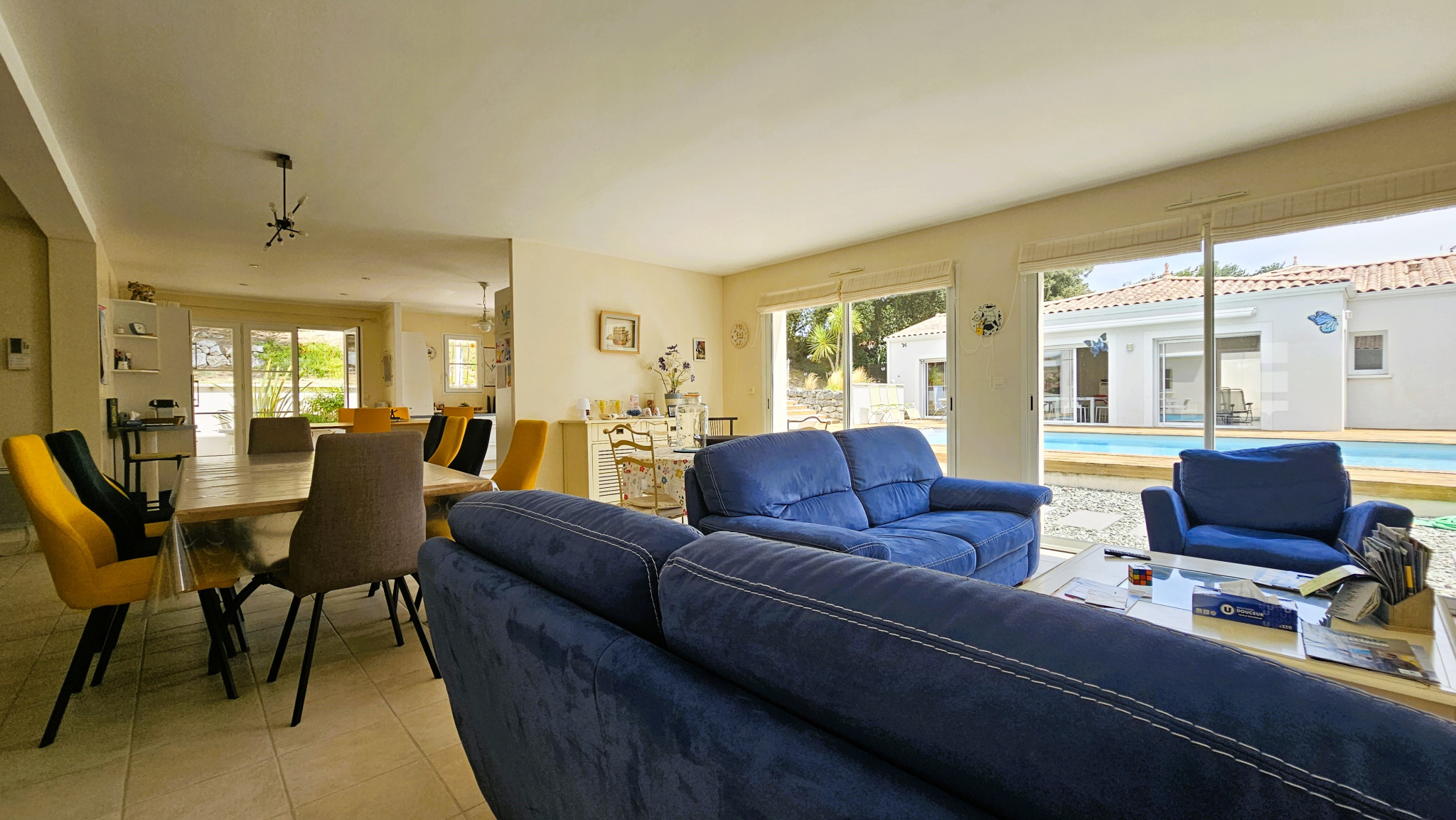 Attenant à la villa de plain-pied, un GARAGE accueille local technique de la piscine et mezzanine dédiée au rangement.