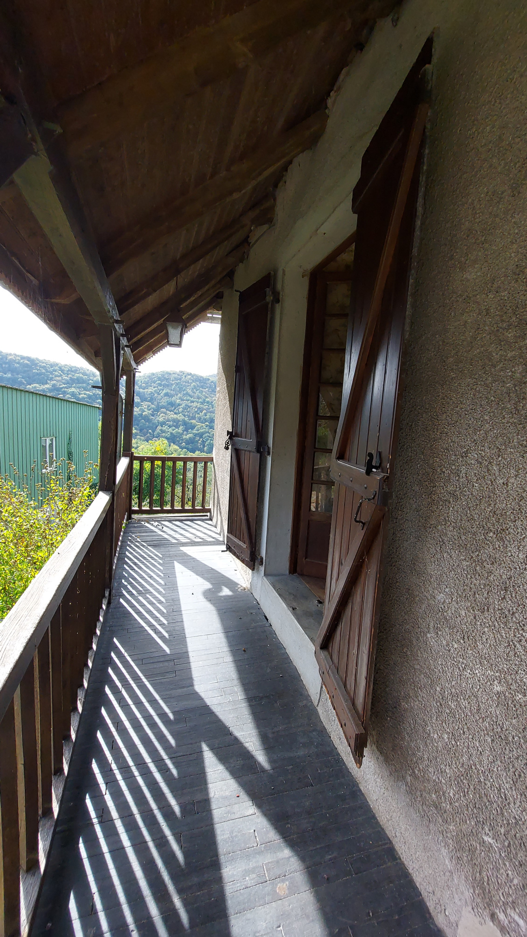 Elle est élevée sur une cave au rez de chaussée et comprend à l'étage : une pièce à vivre d'environ 25 m2 avec cantou et souillarde, une cuisine indépendante, une chambre et une petite salle d'eau ; un balcon bénéficiant d'une vue très agréable sur la vallée de la Cère.
