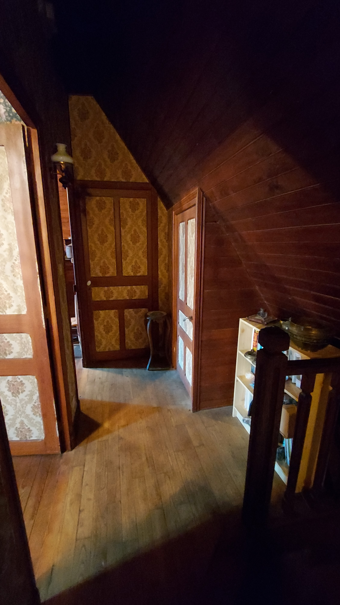 A l'étage supérieur, sous les combles : 2 chambres, une pièce/débarras et grenier.
