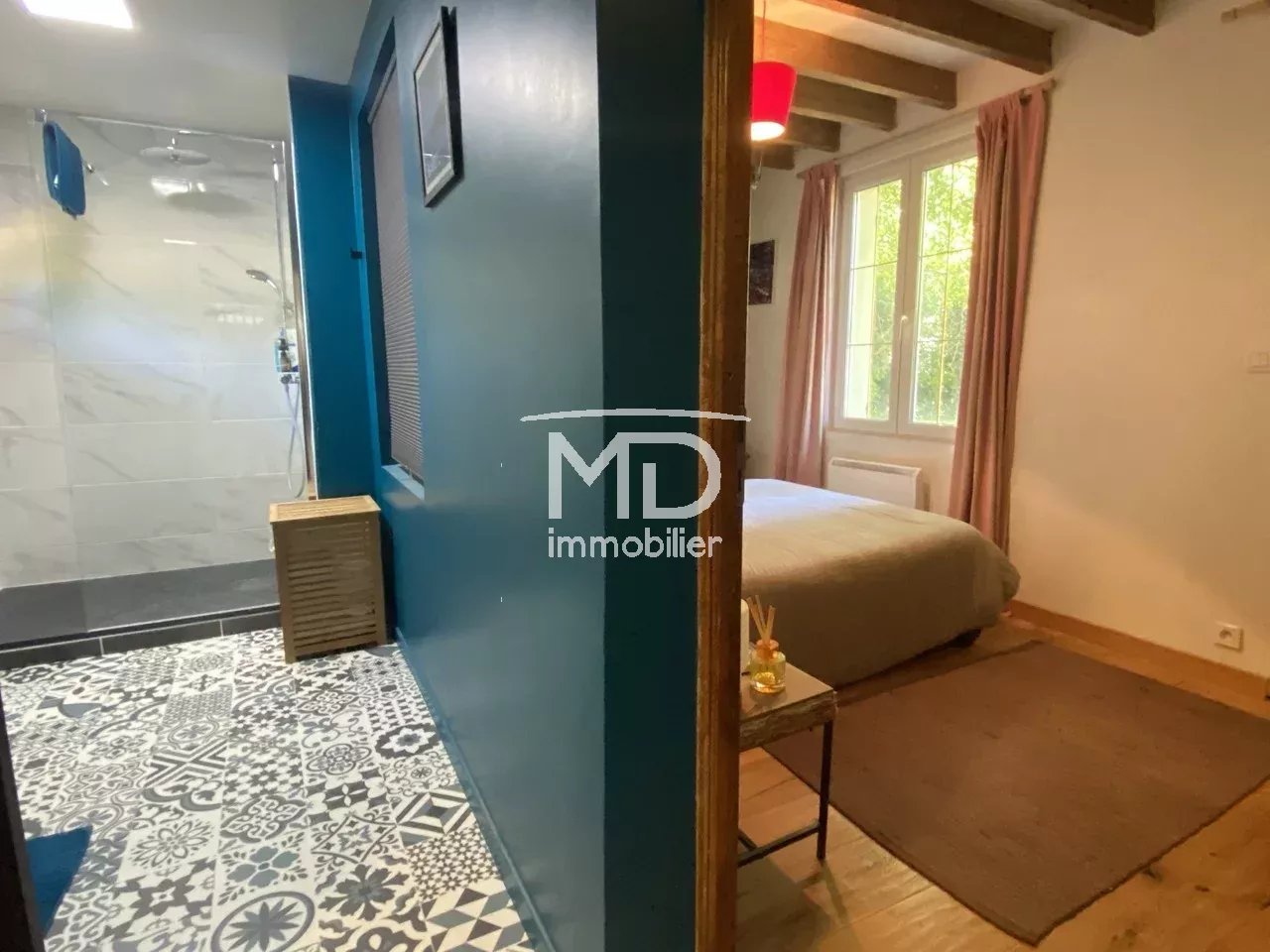 - À l'étage : palier desservant d'une part, une chambre avec sa salle de bains privative et WC, et d'autre part, 3 pièces en enfilade (une chambre double, et une chambre au fond).