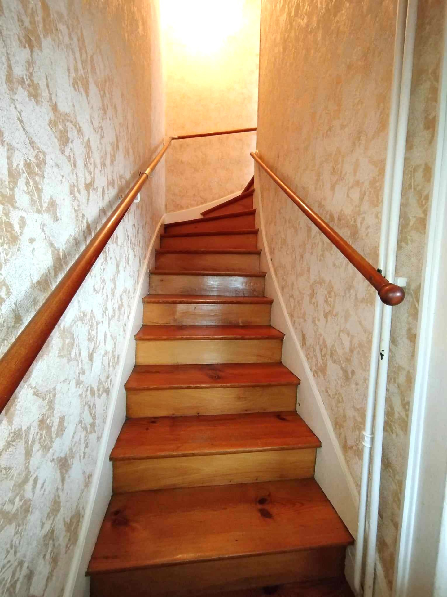 Au premier étage, le couloir dessert 2 chambres, un bureau et une salle de bain avec wc.