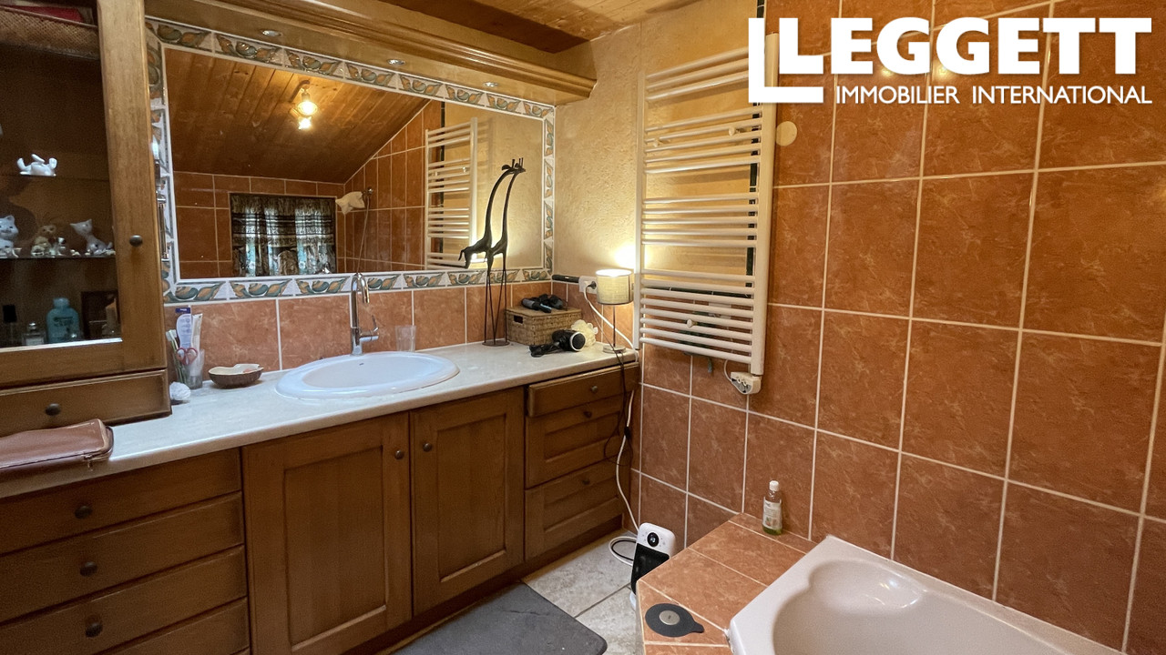 Au rez-de-chaussée, il y a également une grande salle de bains familiale avec une baignoire d'angle encastrée, et un WC séparé.
