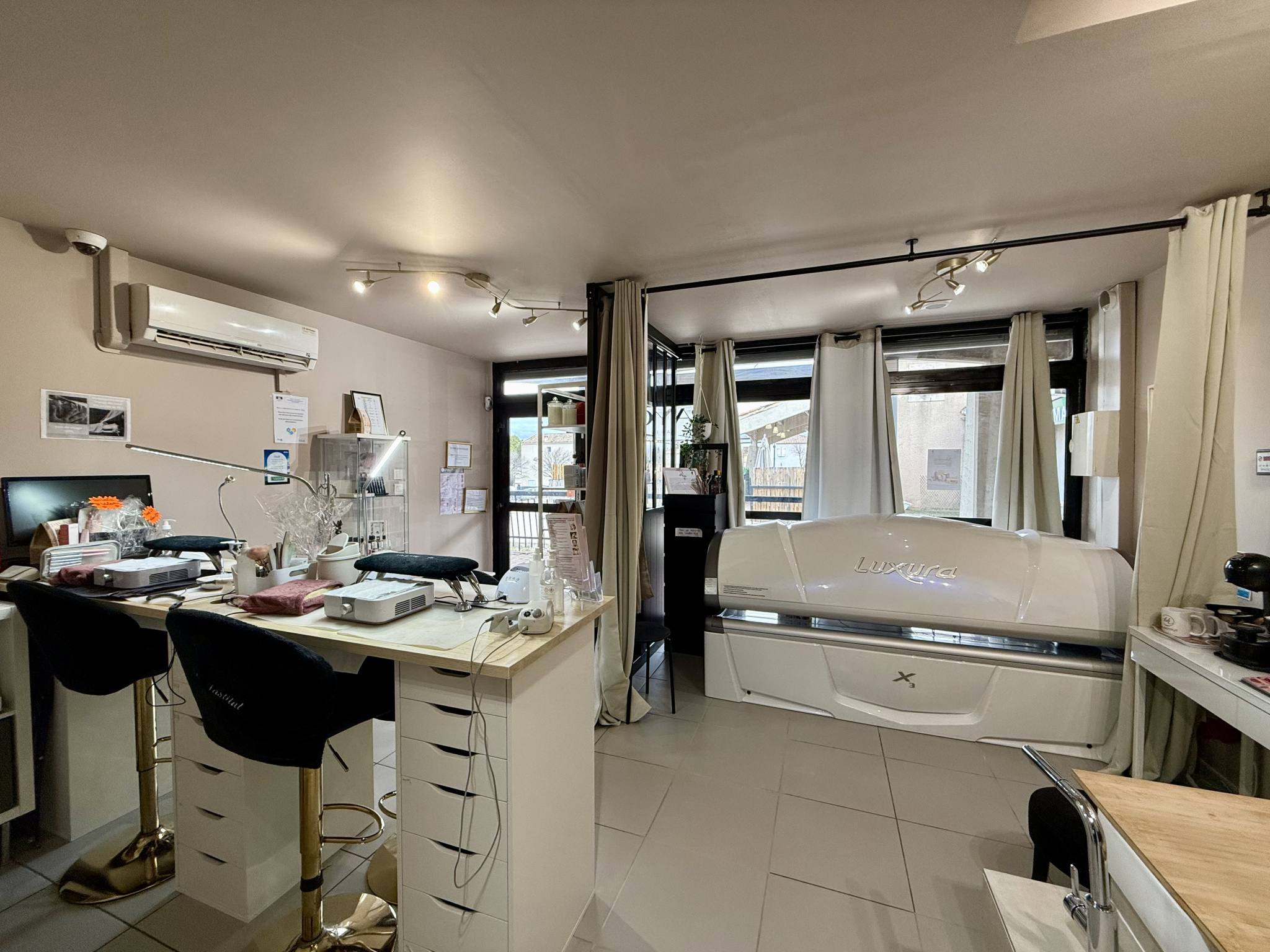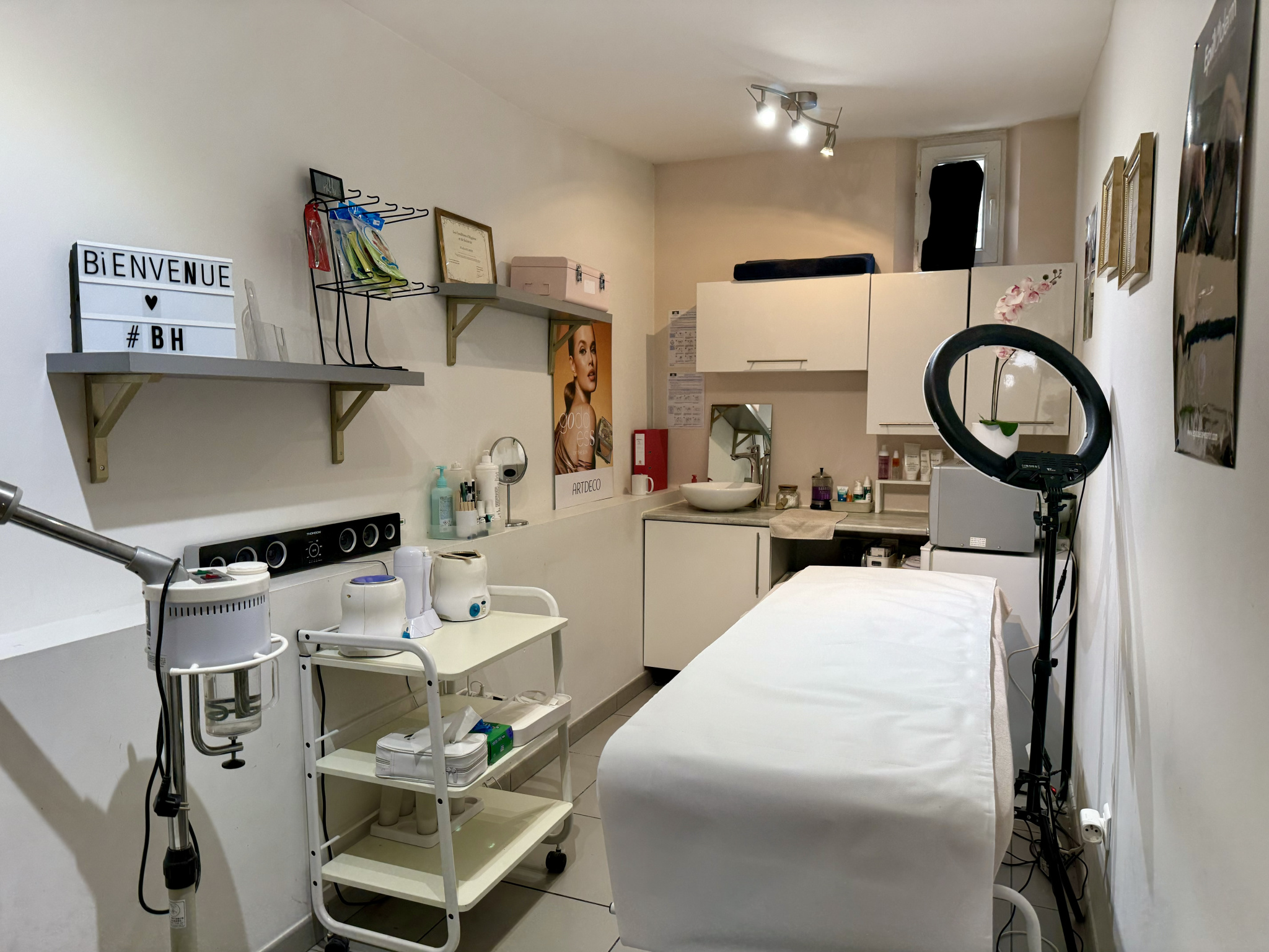 Ce bien est un salon esthétique d'une superficie d'environ 45 m2. Il se compose d'un hall d'entrée donnant accès à un espace onglerie équipé d'une cabine UV. Une cabine duo avec un point d'eau et un hammam, une cabine dédiée à l'épilation, un placard de rangement et un WC indépendant.