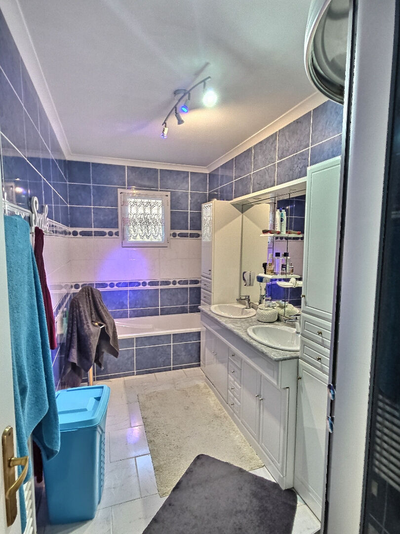 De plain-pied, cette villa vous offre 3 chambres, une pièce à vivre exposée plein sud, une cuisine équipée et aménagée avec son cellier et une salle de bain avec douche et baignoire.
