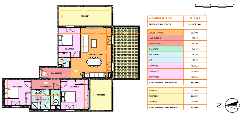 Cette résidence de 60 appartements, allant du studio au T4 bénéficiant d'une terrasse et/ ou d'un jardin ainsi qu'une à deux places de stationnements privatives. En option la possibilité de faire l'acquisition d'un garage au prix de 17500EUR et/ou d'une place de stationnement au prix de 5000EUR.
