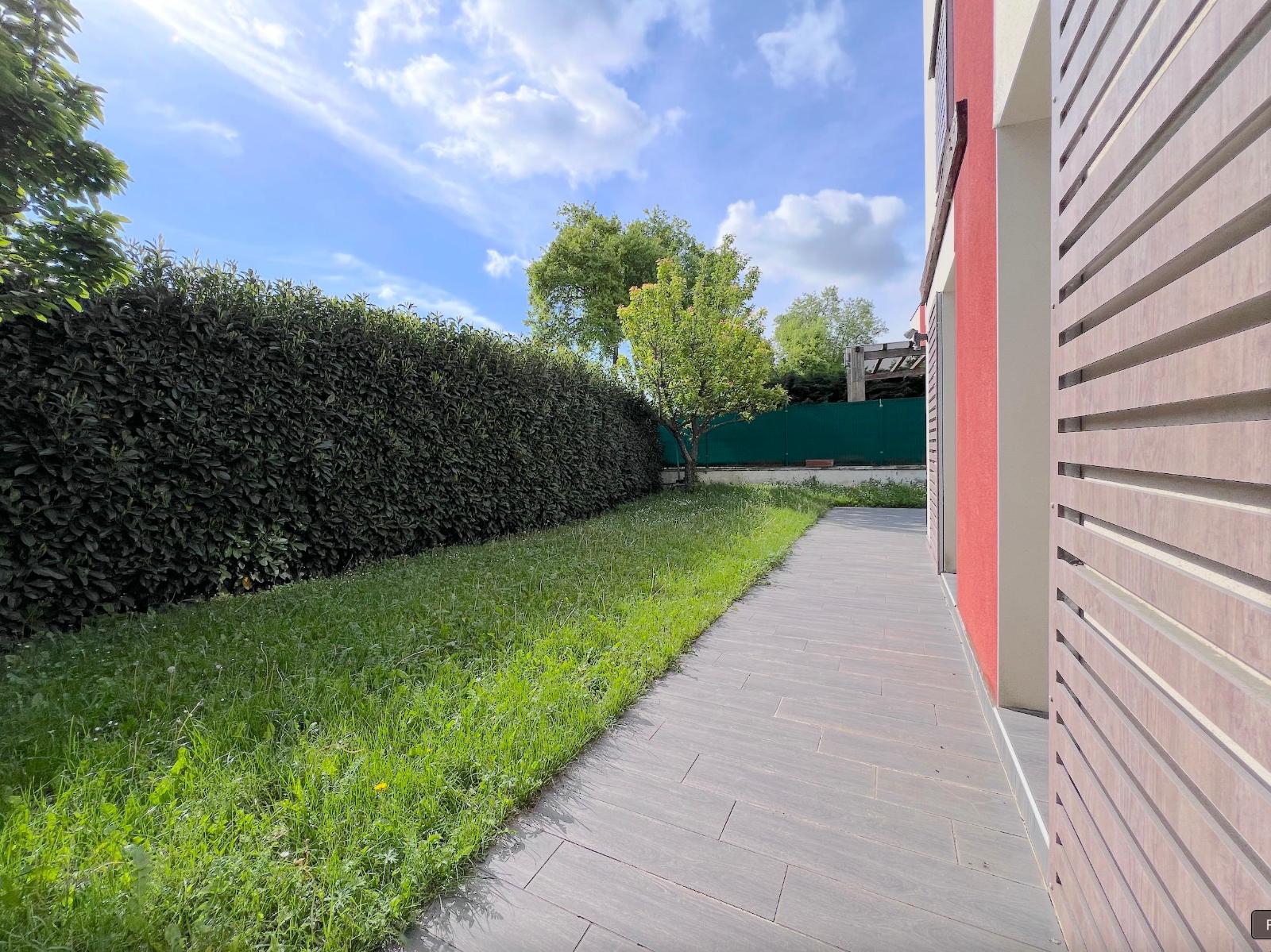 A l'extérieur, vous disposerez de la jouissance exclusive d'une parcelle de jardin d'environ 115 m² avec une belle terrasse sans vis-à-vis équipée d'un un pare-soleil motorisé, qui transformeront vos soirées barbecue en chef d'œuvre. Sur l'avant de la villa, nous trouvons un cellier très utile pour stoker une multitude de chose et pourquoi pas raccorder votre voiture électrique.
