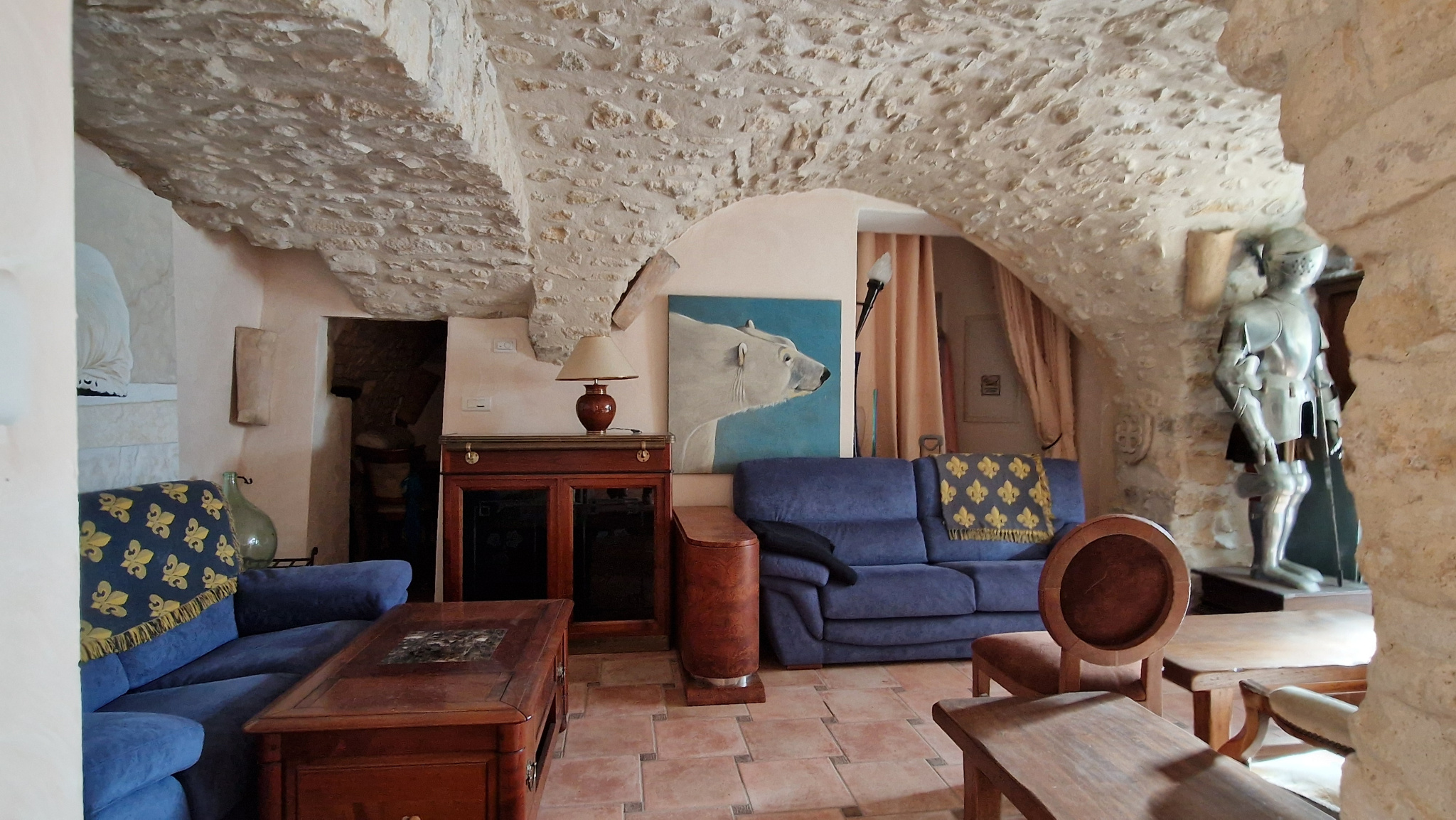 Au RDC: D'un salon voutée avec coin bureau, de deux pièces voutées, d'une chambre voutée avec salle d'eau et coin cuisine, d'une cave / buanderie