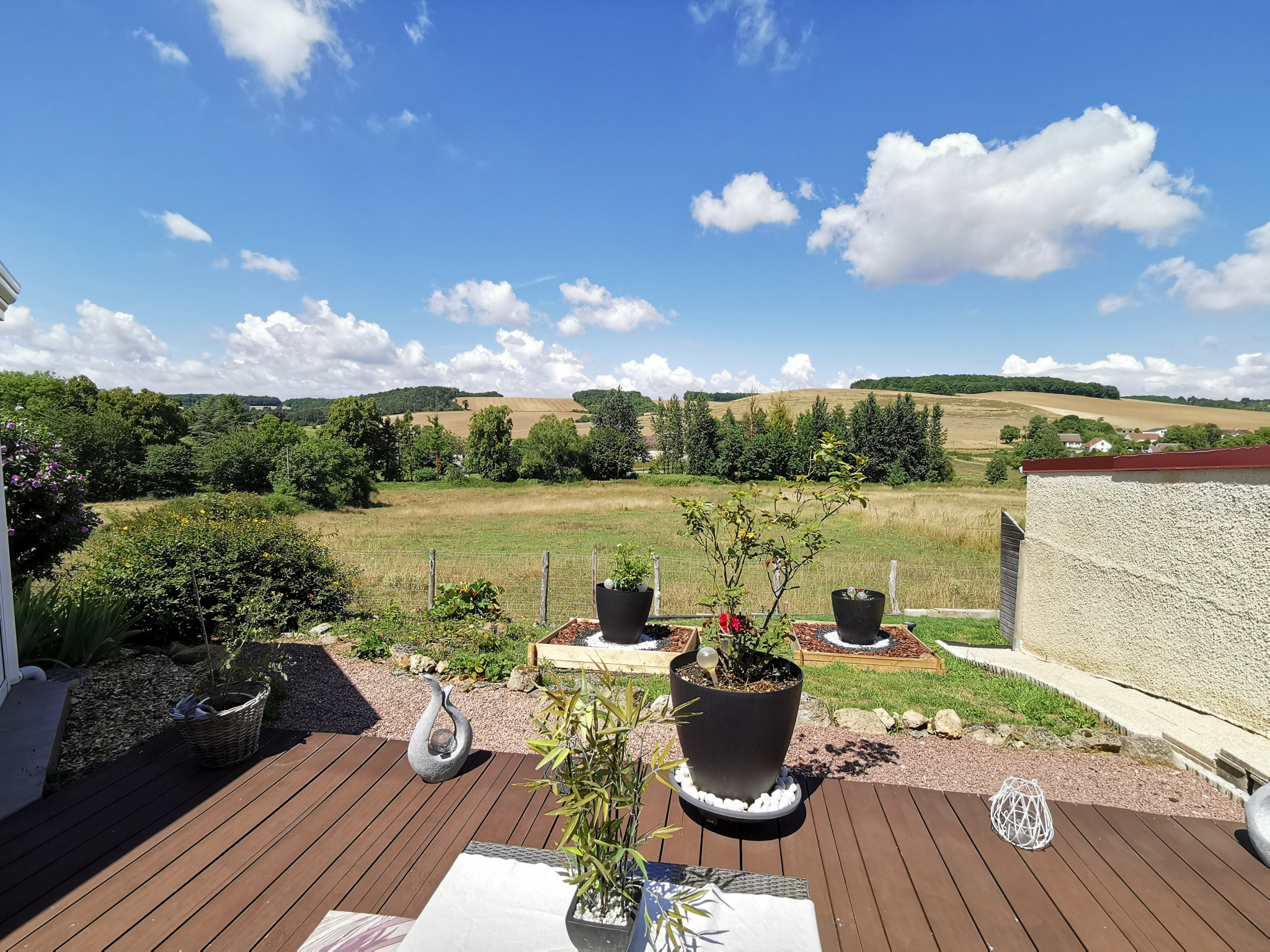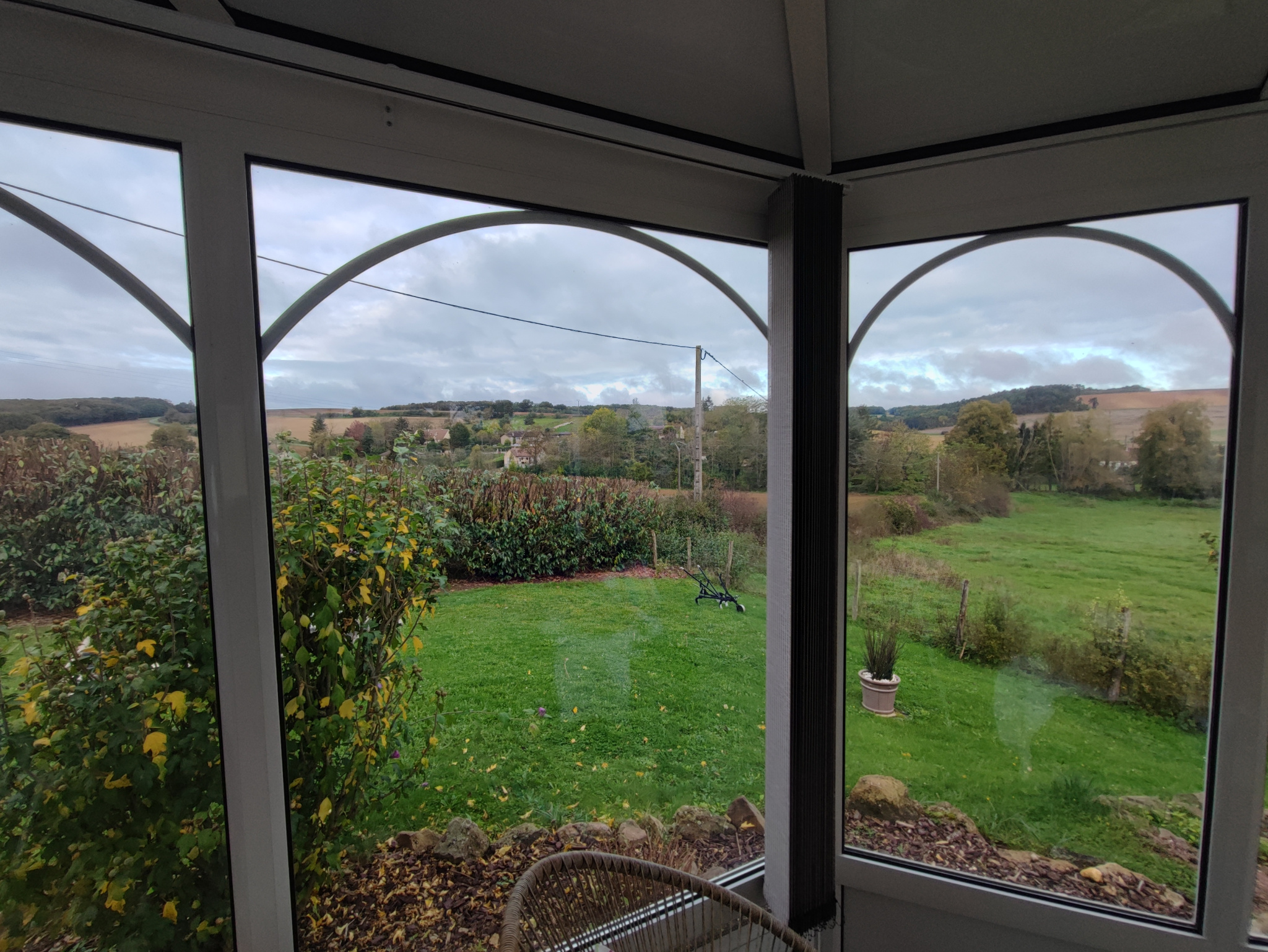 Belle véranda avec vue imprenable sur la campagne et un jardin clos avec atelier indépendant.