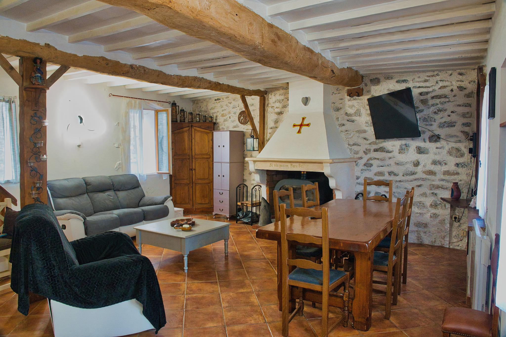 1er étage : Pièce de Vie traversante de 36 m2 avec poêle à bois de 10 KW (Salon, Salle à manger). Possibilité d'organiser en sus un passage avec la pièce de 15 m2 présente dans le Patio.